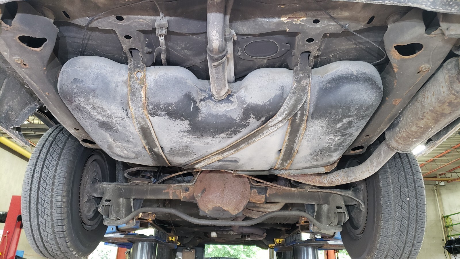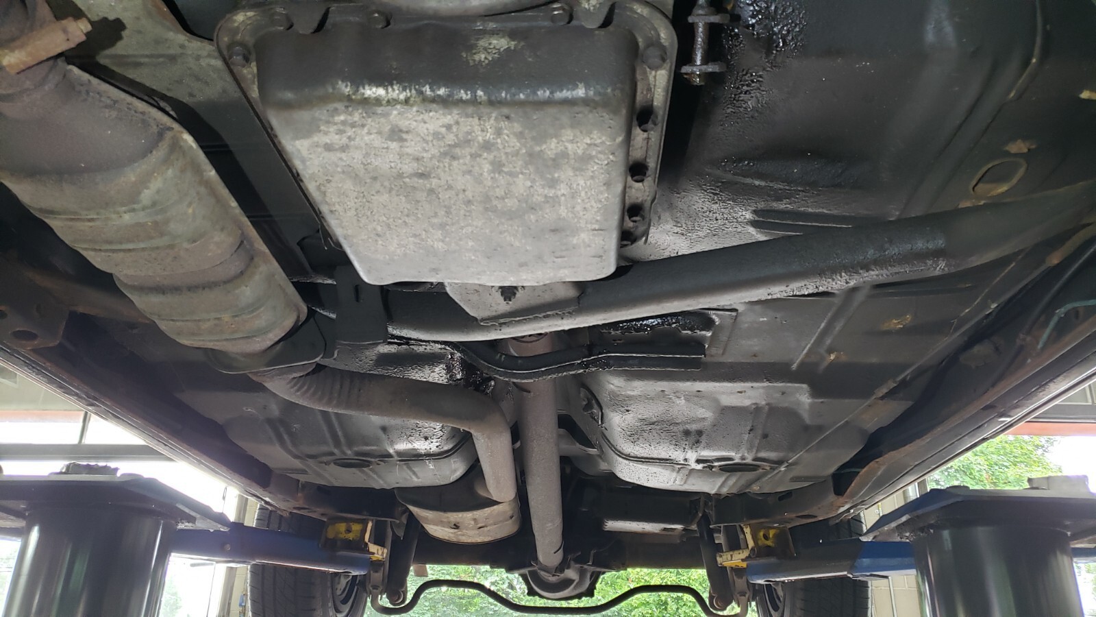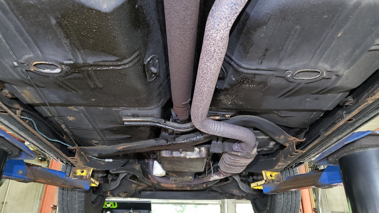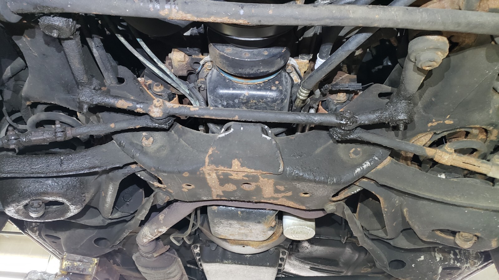 Everything exterior on this vehicle speaks for itself and is what it seems. The paint is in very good condition. The clearcoat is in very good condition and water still beads up and runs off the last wash and wax. Some rock chips in the hood should be expected. I will say that occasionally a new segment of the gray rubberized"shopping cart guard"trim or the chrome trim adhesive wears out and I've been using a strong weatherstrip glue to keep the pieces on the vehicle. None of the repaired areas have come off again. In the images I've highlighted two areas of corrosion that may need attention to keep the body in peak shape for the future. On the underside, the frame and body were coated in the past and they are still holding up very well.
