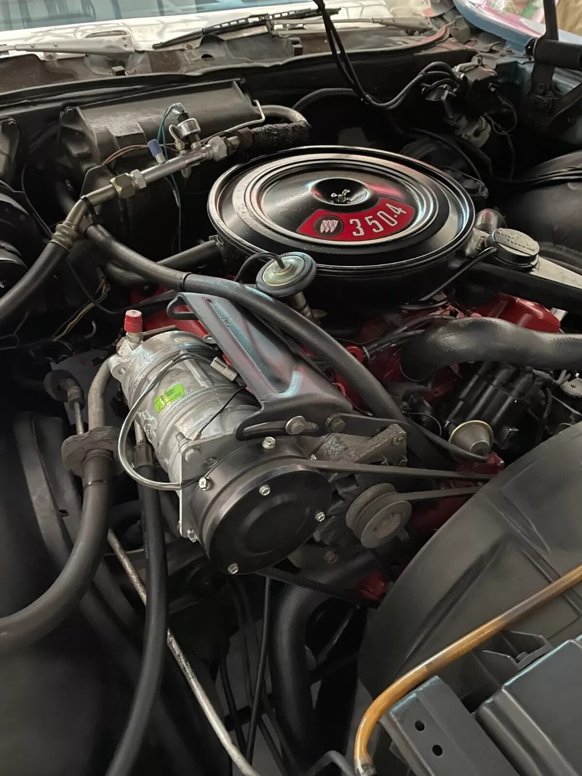 NOW FOR THE GOOD STUFF !!! THIS IS A NUMBERS MATCHING CAR. CAME FROM THE FACTORY WITH A WHITE TOP PAINTED AND BLUE BOTTOM.(NO VINAL TOP) CAR WAS REPAINTED ORIGINAL COLORS (NOT SHOW QUALITY) BUT VERY NICE 8 / 10 I HAVE RUN ALL THE NUMBERS ON THIS BUICK BEFORE I BOUGHT IT, AND EVERYTHING MATCHED. THE CAR WAS ALSO FACTORY AC WHICH HAS A NEW COMPRESSOR AND UPDATED WITH R134a REFRIGERATE. BLOWS ICE COLD