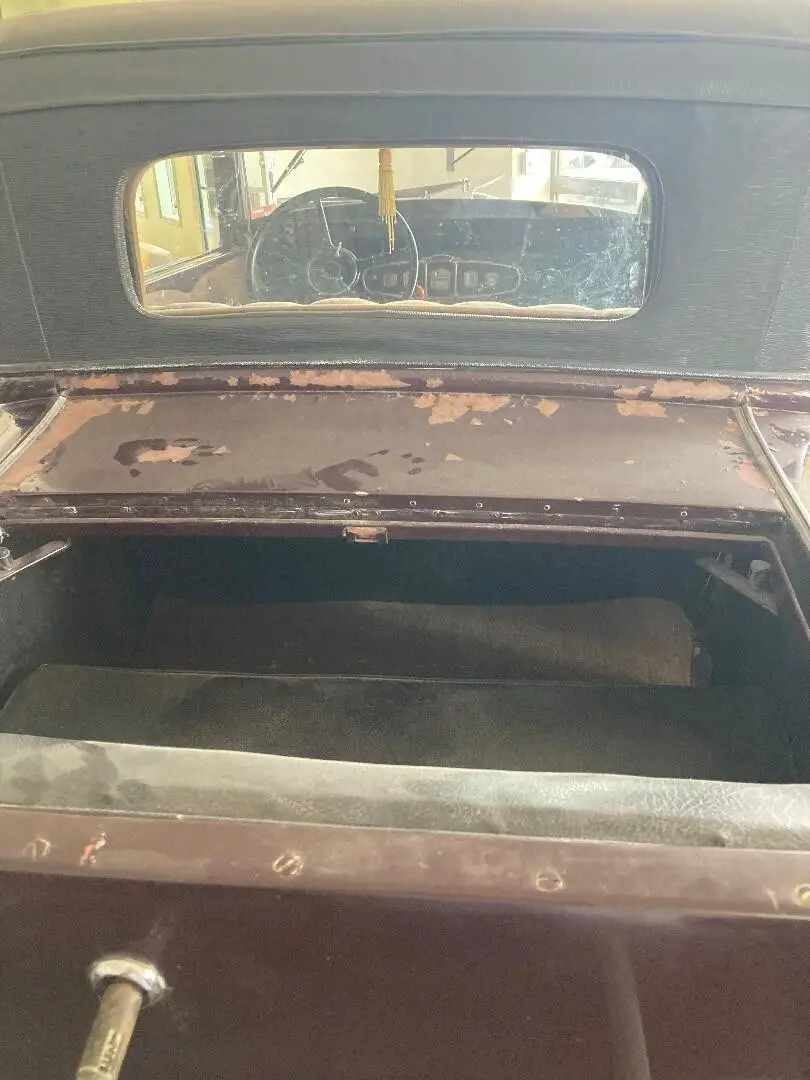 The inside is also pretty nice. The seat, door panels, headliner etc. are in good shape. Only needing a good cleaning. The car has a really neat rumble seat; it too is in good shape. Even the back window rolls down. Very Kool!! The doors sag a little and will need adjusting.
