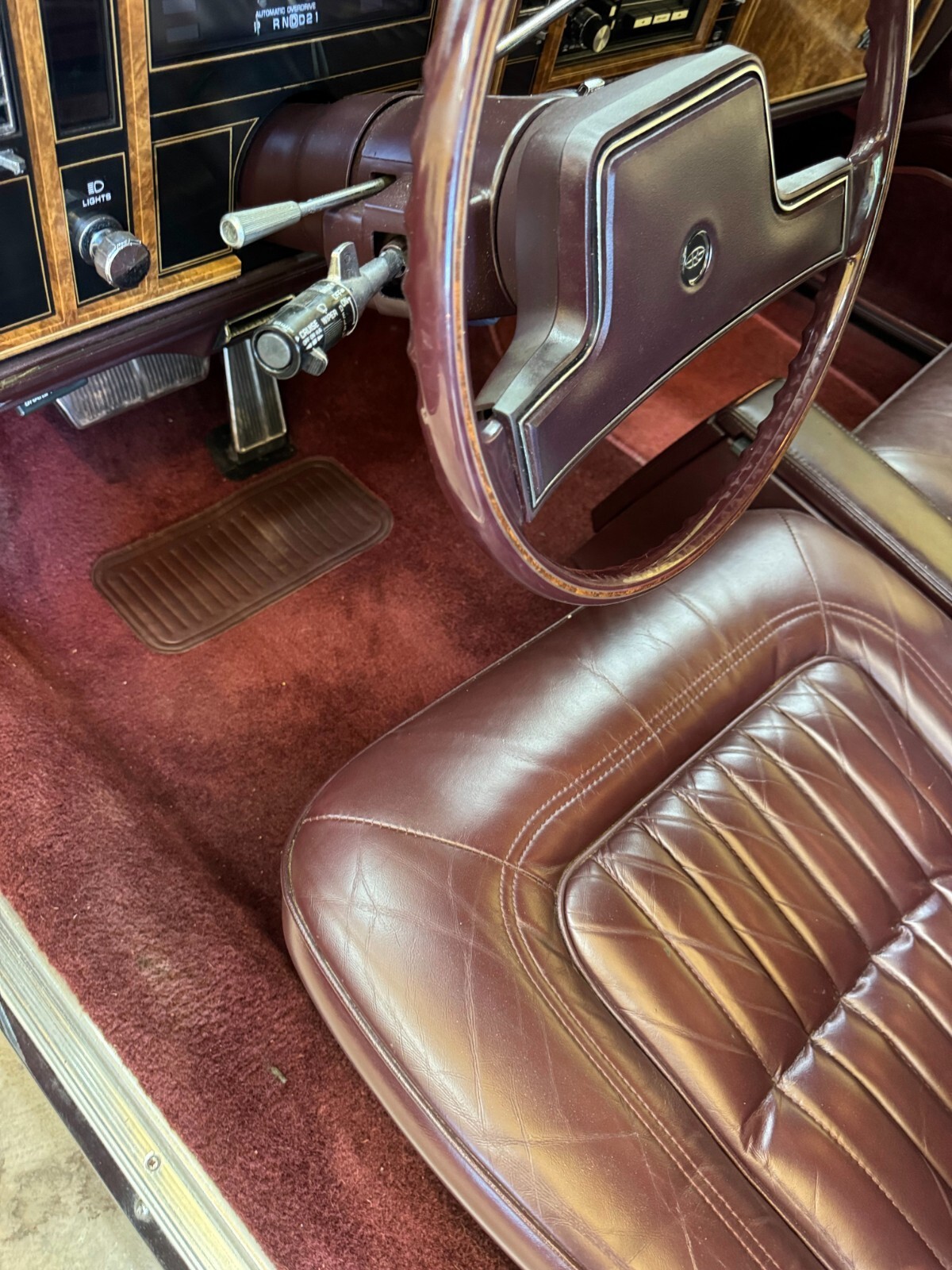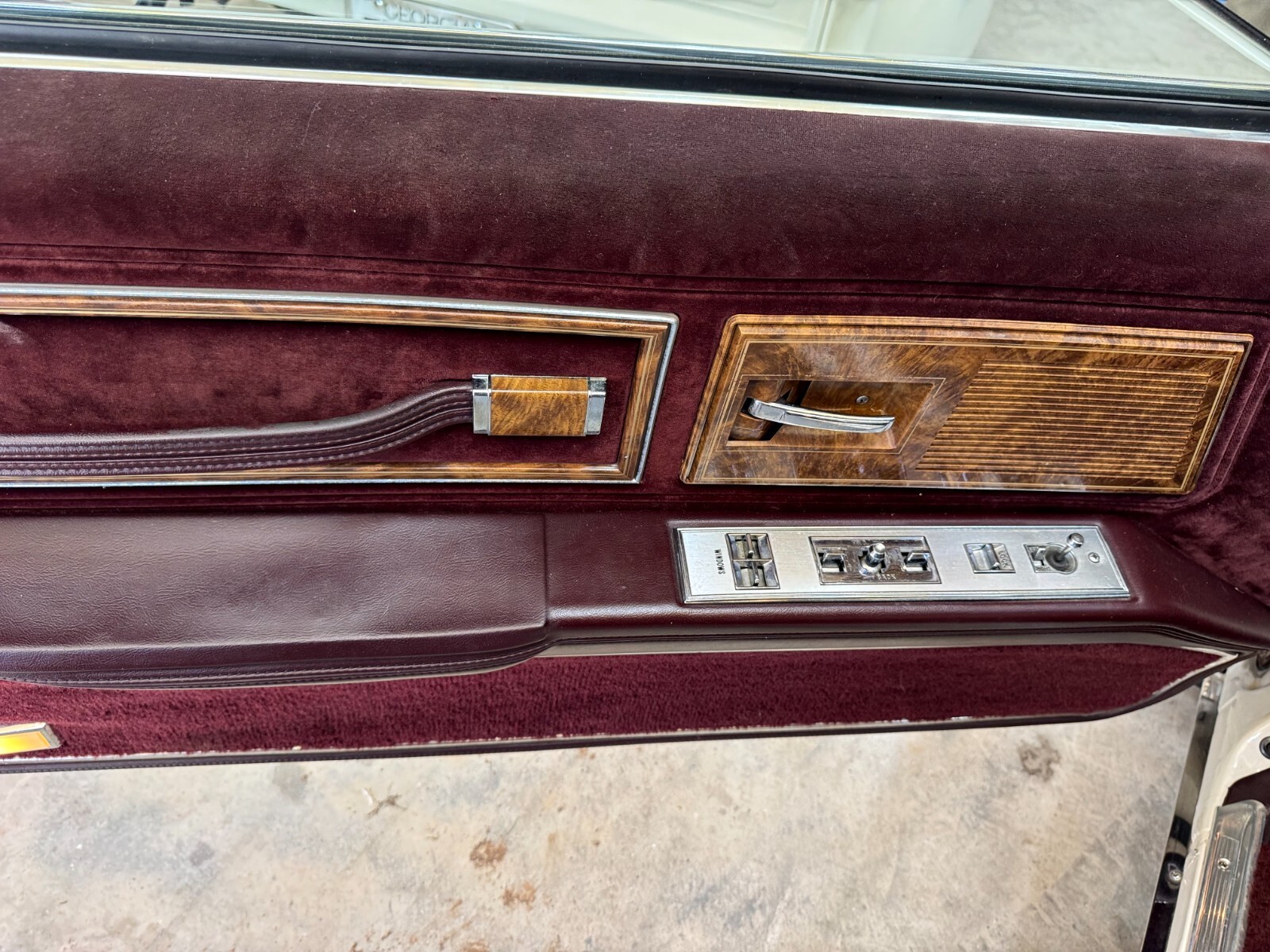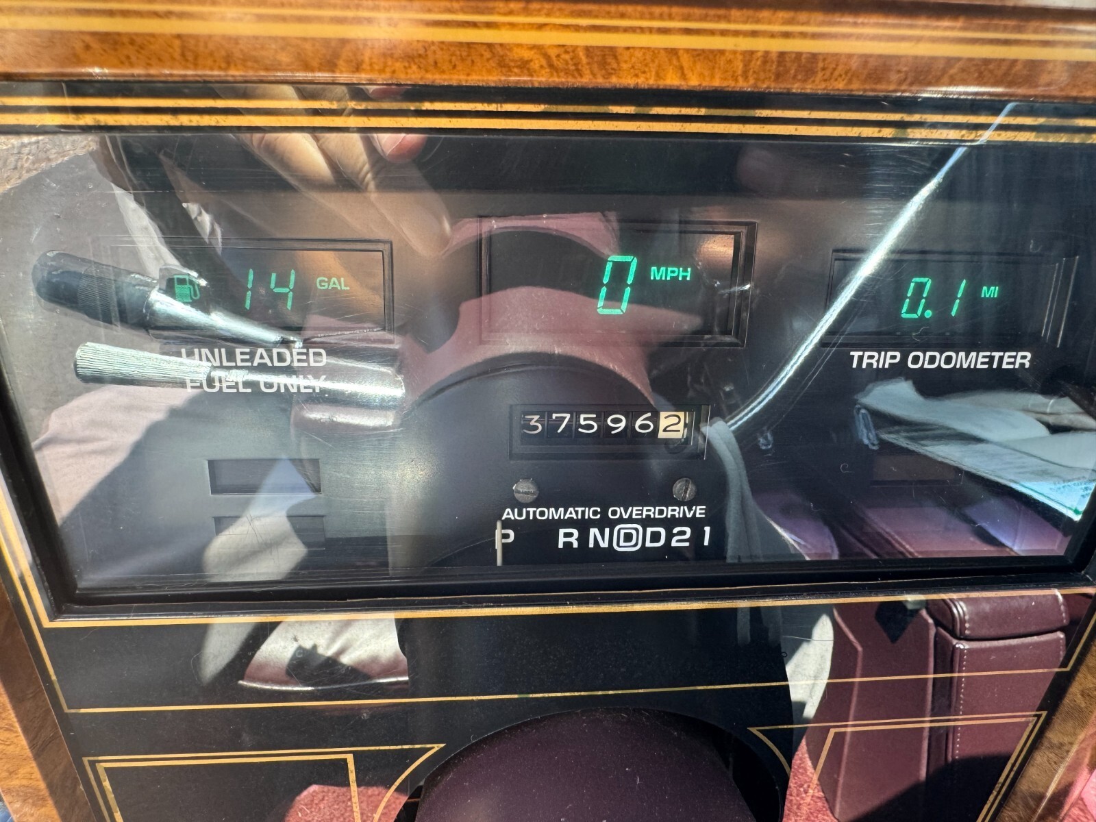 Am/Fm Radio Cassette Clock, Tinted Glass, Power Windows Power Door Locks, Power Driver Seat Power Passenger seat, console, Wood dash, Split-Bench, Optional 45/45 Front Seats with console storage & Leather Upholstery, Electric Mirrors,Remote Trunk release Door Edge Guards, Red Accent Stripes, White Protective side Moldings, Fiber Optic Light Monitors, Wire Wheel Covers, New WhitewallTires,Custom White Vinyl CarriageTop (dealer Installed) ZiebartRust proofing, Books & records