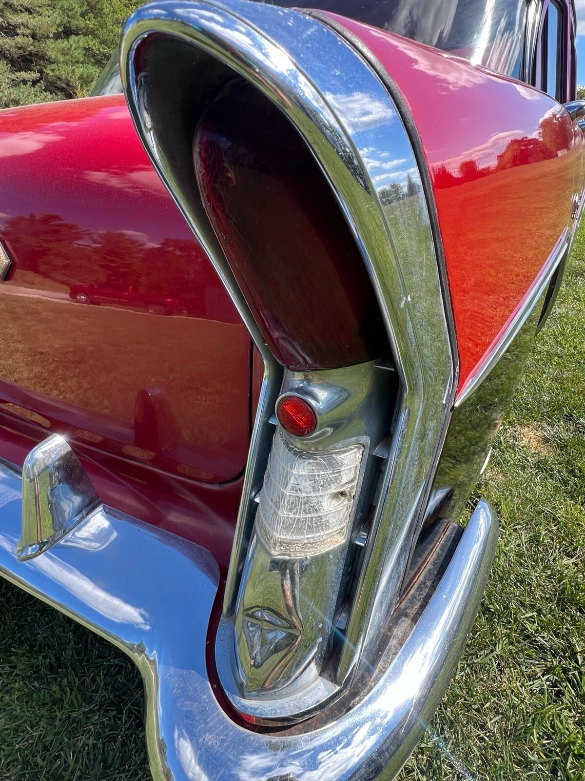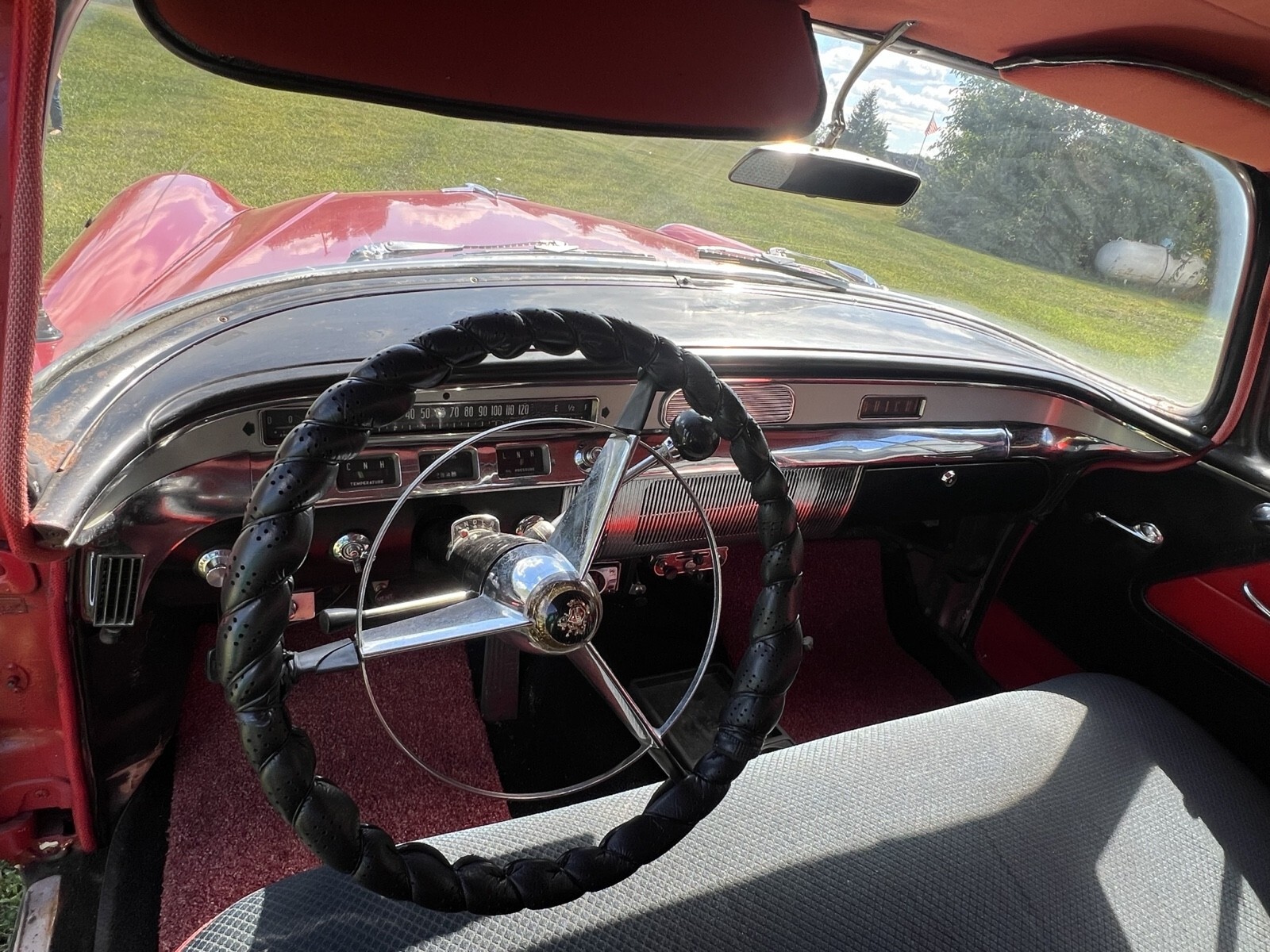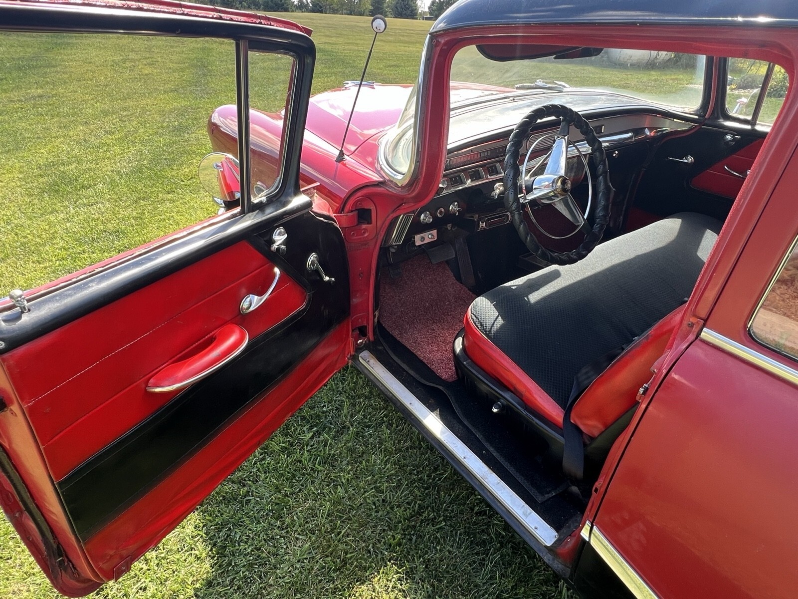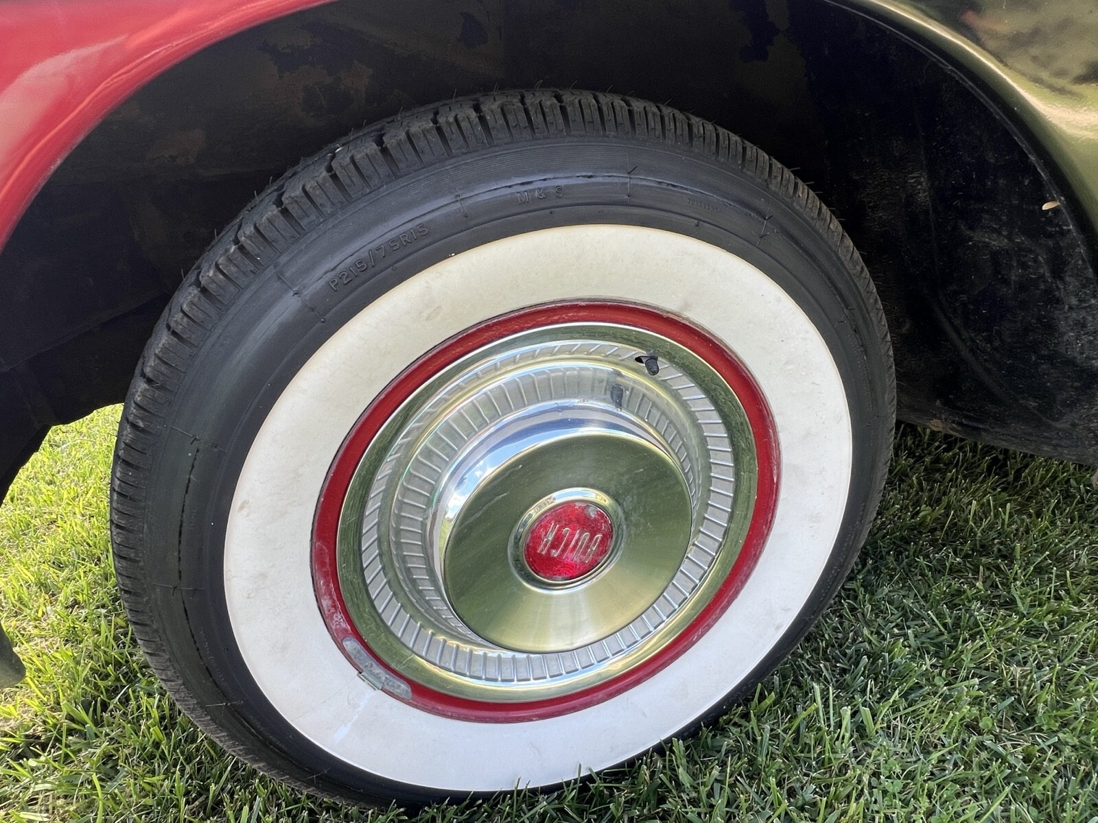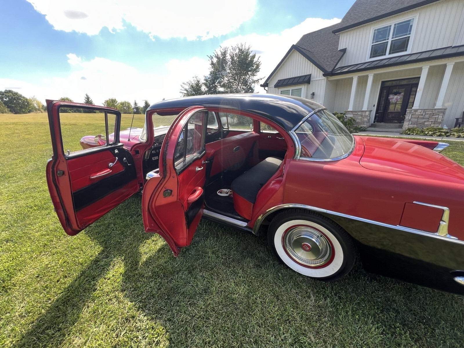 1956 Buick Special. 322 Nailhead V8 with automatic transmission. Starts, runs, and drives without any issues. There has been some body work done on the lower doors passenger side as seen in pictures. All trim and chrome is present with some rust, pitting, and delaminating in places. The floor boards are good. One small hole in passagner floor board.