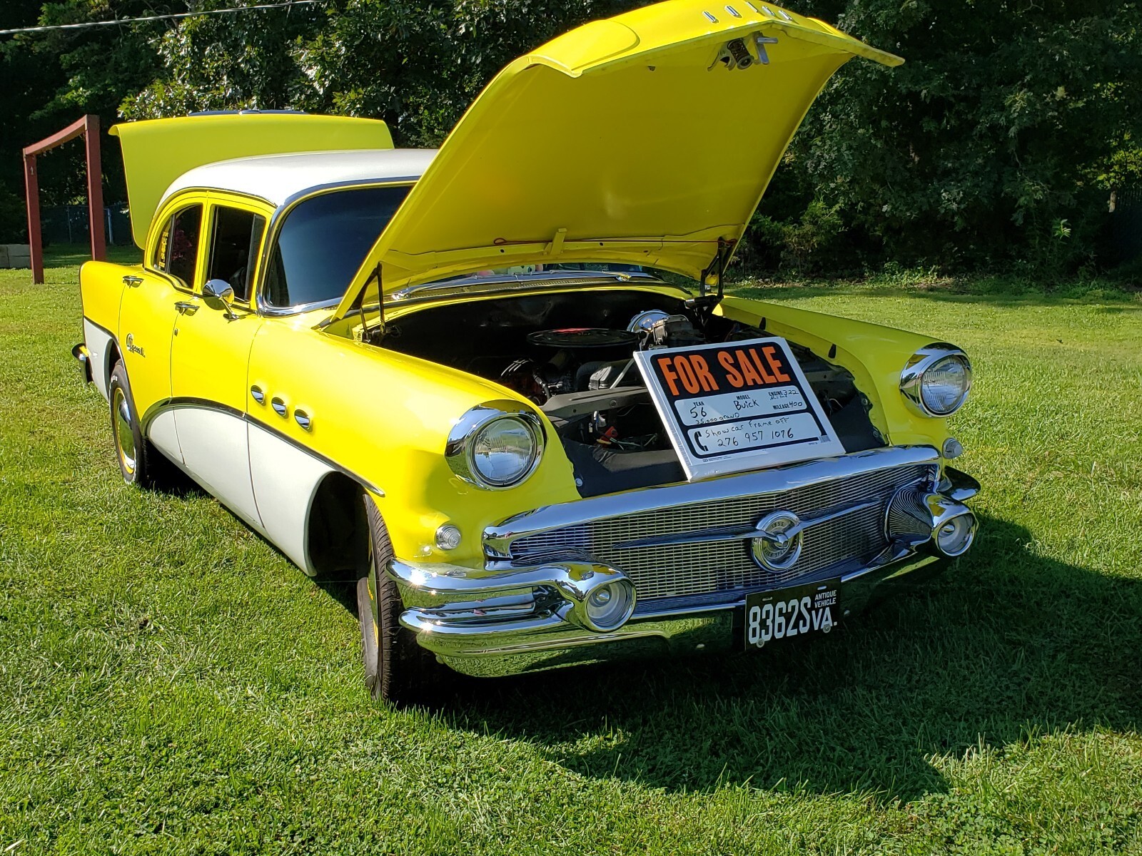 1956 Buick Special frame off restoration. Frame cleaned then painted and rustproof. 1986 Olds rear. New fuel and brake lines with Wilwood front disc brake system. New rear drums with hardware. New fuel tank and sending unit. Power steering box rebuilt by Lars. 400 turbo trans with adapter. New driveshaft. Motor has new plugs,Wires, and Edelbrock 4 barrel. Power brake system from Chevelle mounted on firewall. New exhaust with Flowmaster muffler. All brand new glass except rear window. New radio with speakers. Rewired with new kit. Shaved firewall heat deleted.