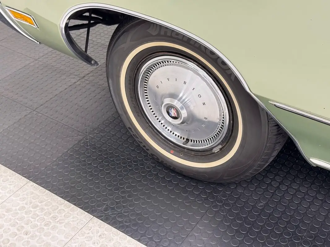 Not only were A-bodies popular in the early 70's, but so were earth tones, including green and this one retains its single state Silver Fern coverage in very nice condition. These are attractive cars with nice proportions and a C-pillar that flows seamlessly into the rear panel. Though GM shared the platform, when you look at the face of a Buick, it's handsome and distinctive and chrome fills this one in the headlight bezels and bumper that absorbs dual intakes and the marker lights. In back, the chrome conforms with the body and houses the straight tail lights under point crested fenders. 215/75R14 tires with a late 2018 date code surround the 14-inch steel wheels with proper wheel coverings so often replaced with aftermarket wheels. This is how they looked in 1971. Imperfections are limited to some bubbling around wheel openings,