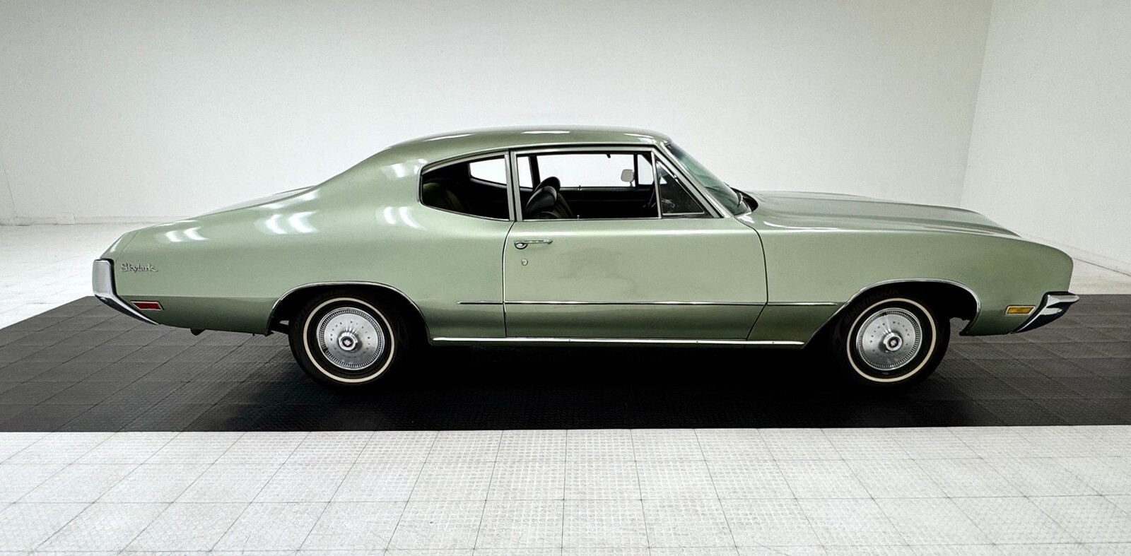 If you're a child of the 70's, the cabin might bring back some fond memories. We grab the green steering wheel, pump the gas, turn the key, and put that familiar column shifter into Drive. The car rolls along nicely and the engine runs smooth. With a wheelbase shorter than the LeSabre and other big Buicks, the Skylark handles with more nimble agility. We note the A/C is not working but all other functions operate as they should. While Classic Auto Mall represents that these functions were working at the time of our test drive, we cannot guarantee these functions will be working at the time of your purchase.