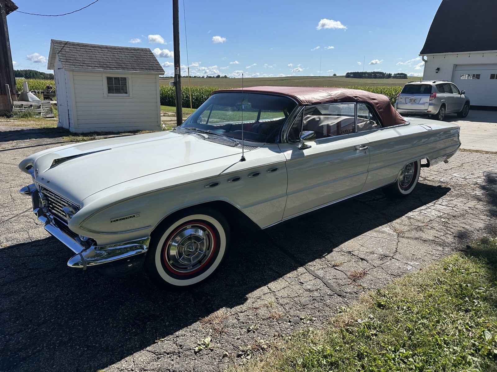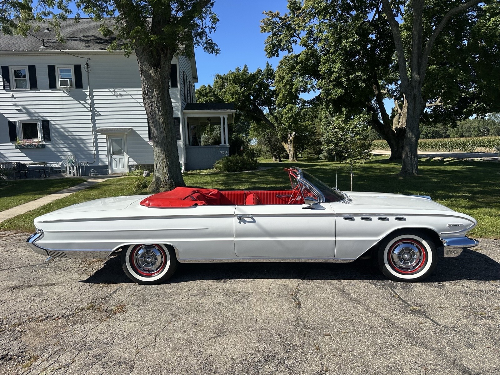 Beautiful rare 1961 Buick Electra 225 convertible white with red interior . runs and drives excellent. Fully restored. V8 401 nailhead rebuilt, automatic transmission. Body is in good condition with minor Chips from driving. Interior is in very good condition. New leather upholstery chrome is in very good condition. All the electrical works convertible Top is new and in perfect working condition. Glass is good.