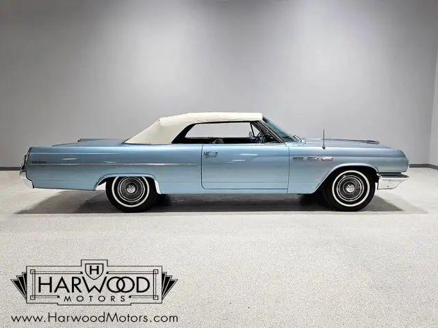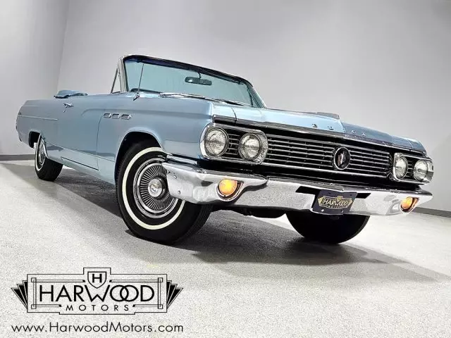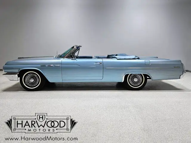 Buick knew who they were in 1963. The full-sized lineup of cars included some serious luxury backed by performance that was quiet and understated, yet impressive. The Lesabre was the mid-range model, offering full-sized comfort without the full-sized luxury price. This handsome convertible was exactly what thousands of bank presidents and senior advertising execs drove in 1963?upscale yet not excessively flashy. In this car?s case, the paint is an older repaint in the original Marlin Blue and it still shows rather well. Bodywork is quite good and the doors close with a solid sound that you?d all but forgotten was possible on a convertible. As a car that has never been fully apart, it has a robust feeling that?s difficult to restore back into a car once it?s been disassembled. There?s a nice shine to the finish, the body gaps are quite good, and the icy blue suits the large ragtop rather well. There?s still plenty of chrome on a 1963 Buick, all of which is in excellent condition?even the faux ?venti-ports? on the front fenders show minimal pitting, which is very unusual. For a mostly original car, it's in fantastic shape!