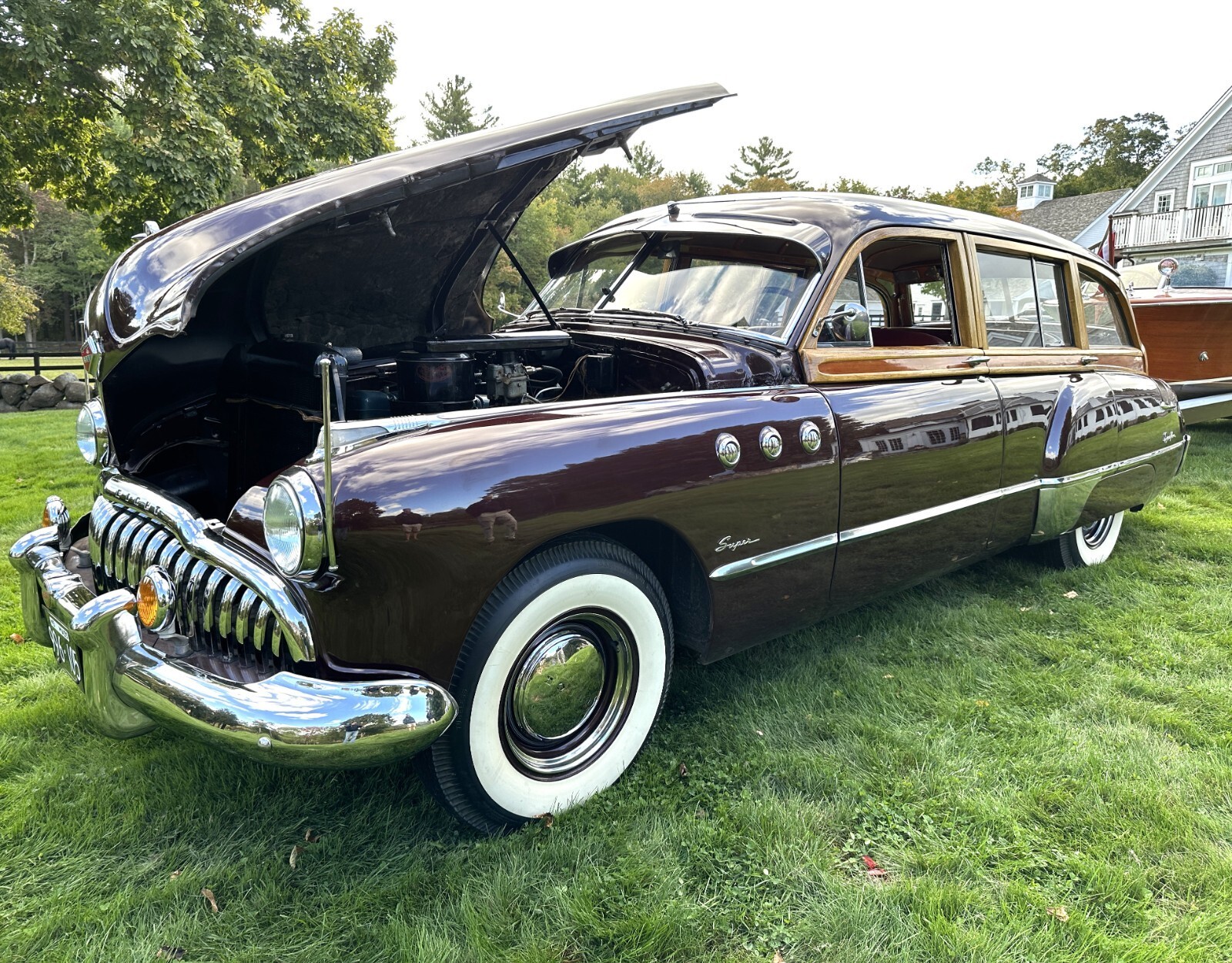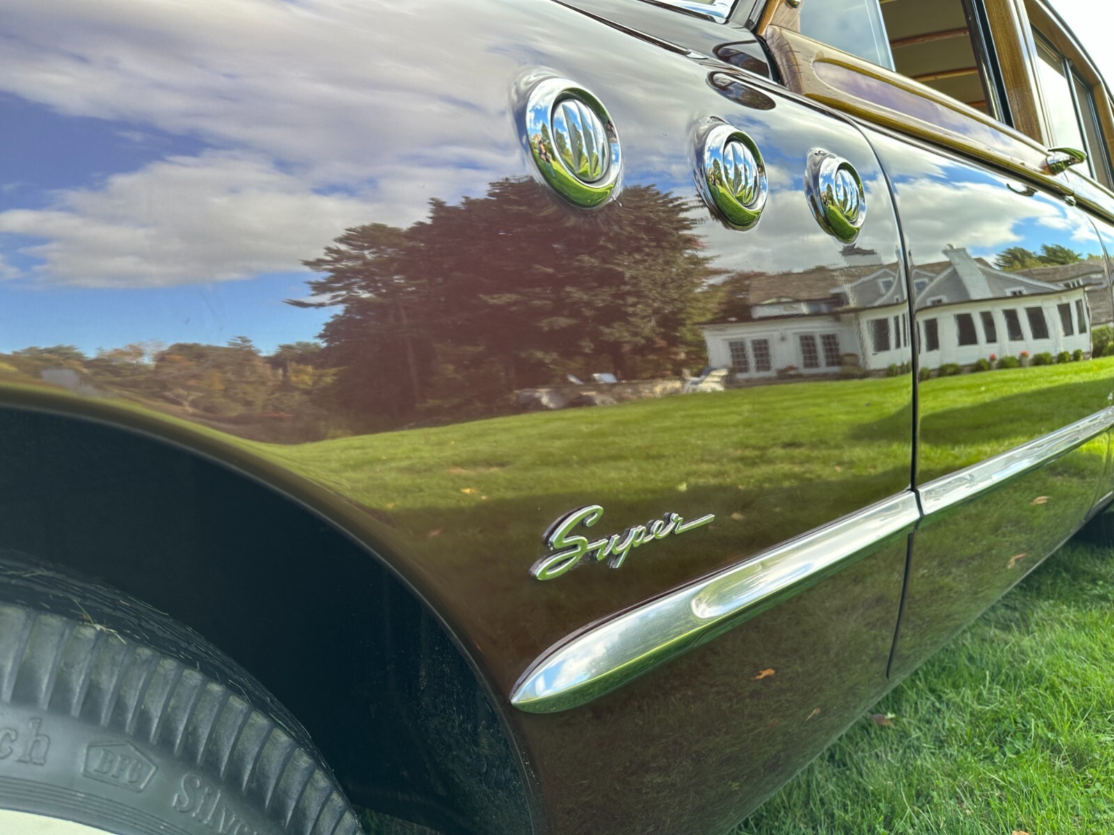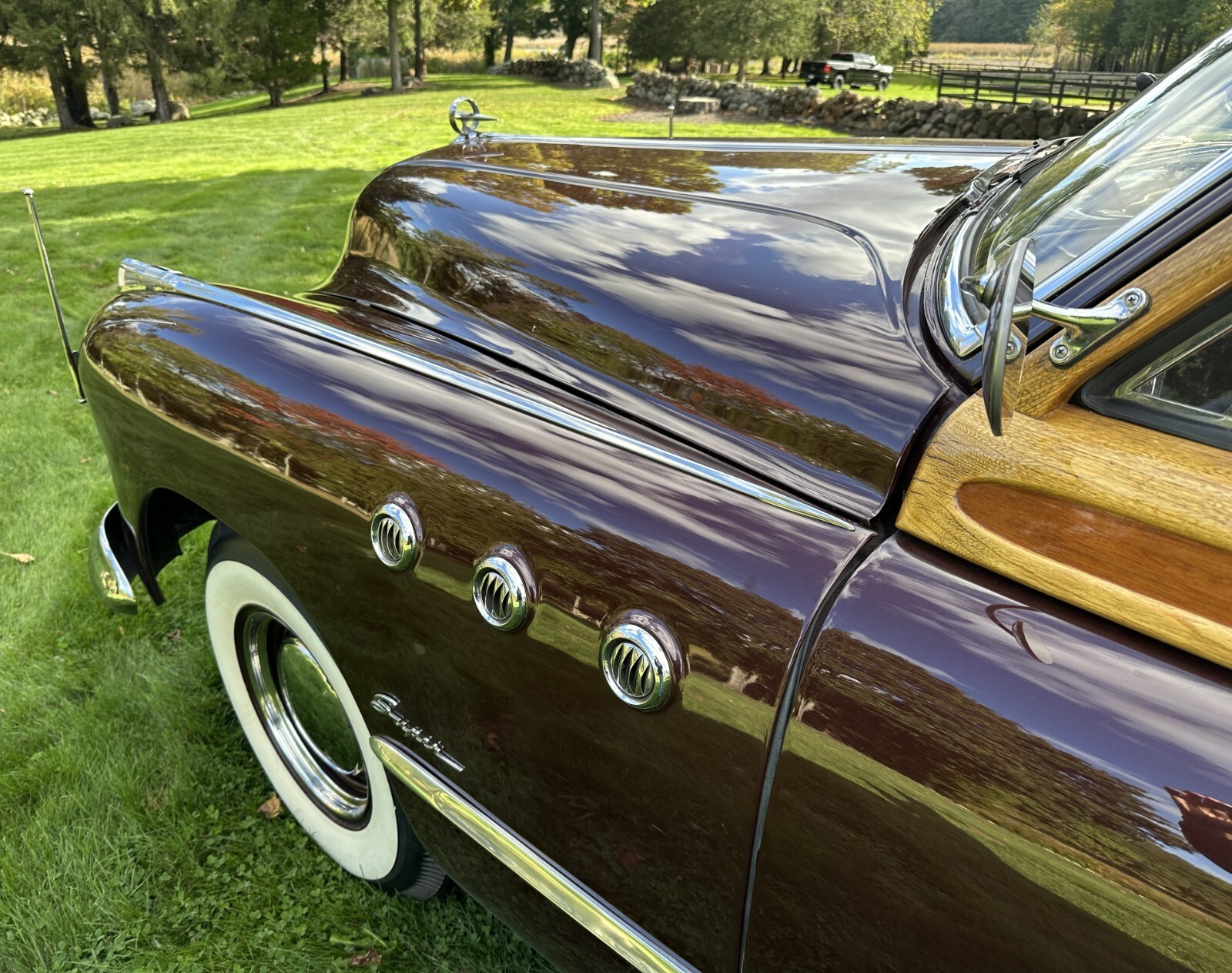 Zoom Classic Cars presents this fully restored 1949 Buick Super 8 Dynaflow Woody Estate Wagon. The Rare Model 59 Super 8 Woody Estate Wagon is 1 of 1,830 produced in 1949 and represents less than 5% of total Buick production in that year. It was one of the most expensive and rarest body styles offered in 1949 and was the last wood-bodied station wagon mass-produced in the United States For fans of genuine wood-bodied wagons, the 1949 Buick is the absolute pinnacle of desirability. Built at the Ionia assembly plant, this Buick features the Valve-in-Head 238CI Fireball Dynaflash Straight Eight Engine coupled to the Dynaflow Drive Automatic Transmission. Other features includes beautiful mahogany and ash veneers where they were complemented with fine leather upholstery, Foamtex seat cushions, a flexible spoke steering wheel, anti-glare rearview mirror, an electric in-dash clock, rear cabin light and luxurious interior carpeting. Factory features included back-up lights, turn signals, windshield washers, stone guards, fender skirts and wide whitewall tires matched with full-size chromed wheel covers with Buick insignia. Two new features would come to symbolize the Estate Wagon brand: sweeping chromed body-side moldings and Iconic VentiPorts with the Super having 3 on each of the front fenders. Car is in overall excellent condition with all of the body panels lining up nicely and all of the wood beautifully restored. All of the chrome, trim and badging is intact and in excellent condition. Interior is very clean featuring red leather bench seating with carpeting on the rear flooring and a rubber mat in the front. Cargo area is very clean and carpeted with compartment that opens up revealing a full spare tire and jack components. Undercarriage is very clean with solid frame and suspension. Single exhaust exiting the rear with custom Chrome tip. Reserve Price is for the Buick Wagon only.