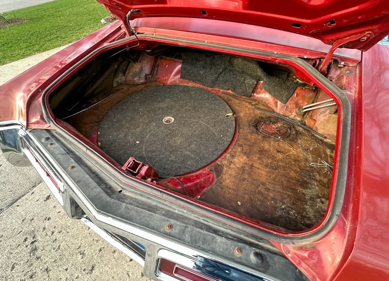 Interior: Clean and largely original, including carpet, headliner, and door panels. The driver's seat has some separation in the upholstery. The original steering wheel is present, with a fully functional horn and tilt mechanism. A new windshield has been installed, and weather stripping around the driver and passenger windows has been replaced. Most original bulbs, including all four T3 headlights, still work. GM floor mats, BF Goodrich tires have life left in them.