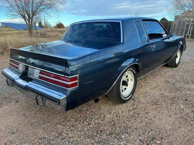 This is an exceptional example of a well-cared for 1987 Buick Regal equipped with the Y56 "T" Package and LC2 factory 3.8 turbo. Buick Dark Blue Metallic (WA8592). FE3 Sport Suspension code, which is standard in the legendary Grand National. The tinted windows have preserved the factory interior during its weekend cruises. This was the last year of the rear-wheel drive regals. Very low production and not many people realize this vehicle was actually lighter than the Grand National due to several factors, including the aluminum T-Type wheels versus the steel GN wheels, also aluminum bumper braces (trunk label code VD6 and VD7) helped shed weight off the nose (the GN used steel units).