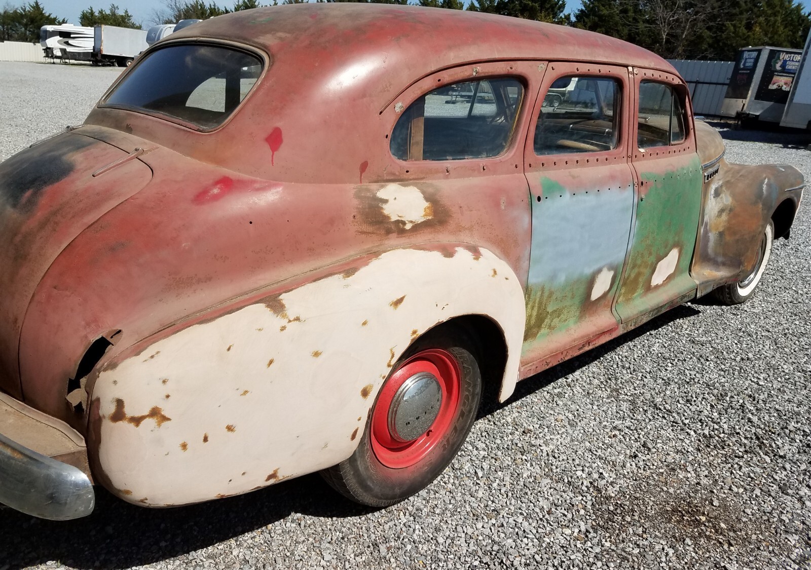 VERY RARE 1941 BUICK LIMITED TOURING SEDAN FOR PARTS OR RESTORATION. IT IS A VERY LOW PRODUCTION CAR WITH VERY FEW LEFT. ALL AUTOMOBILE PRODUCTION STOPPED ON JANUARY 15TH 1942 DUE TO WORLD WAR TWO. IT SPENT MOST OF ITS LIFE BEFORE IN CALIFORNIA BEFORE COMING TO TEXAS IN THE MID 1980S. IT IS A VERY SOLID CAR, THE ONLY SERIOUS RUST IS IN THE SPARE TIRE WELL LIKE MOST OF THEM HAVE. IT HAS A GORGEOUS NEW INTERIOR AT A COST OF OVER $7000.00. THE HEADLINER IS THE ORIGINAL AND IT IS STILL IN GOOD CONDITION. IT IS CURRENTLY NOT RUNNING BUT IT ROLLS AND STEERS. MOST BODY WORK HAS BEEN DONE AND WITH NEW PAINT AND GET IT RUNNING YOU WILL HAVE A VERY NICE CAR FOR NOT MUCH MONEY. I HAVE THE CYLINDER HEAD, RADIATOR, THE BELT MOULDING FOR THE RIGHT SIDE, AND THE INTERIOR GARNISH MOULDINGS FOR THE REAR DOORS. THE CAR IS SOLD AS IS FOR PARTS OR RESTORE. AND WITH ALL FAULTS KNOW OR UNKNOWN AND ALL SALES ARE FINAL, NO REFUNDS FOR ANY REASON WITH NO EXCEPTIONS, EMAIL WITH QUESTIONS AND THANKS.