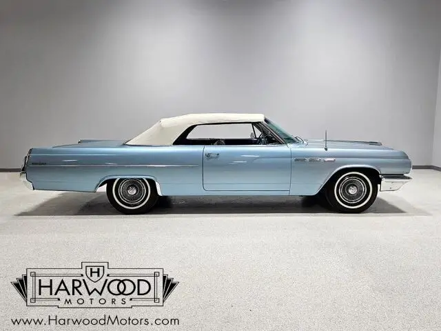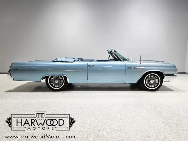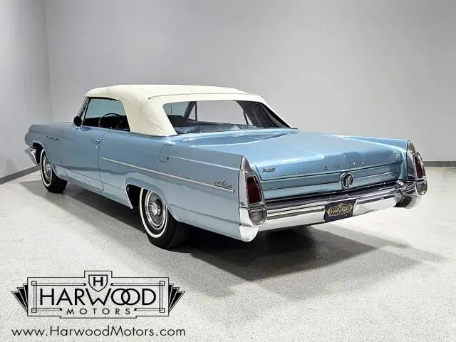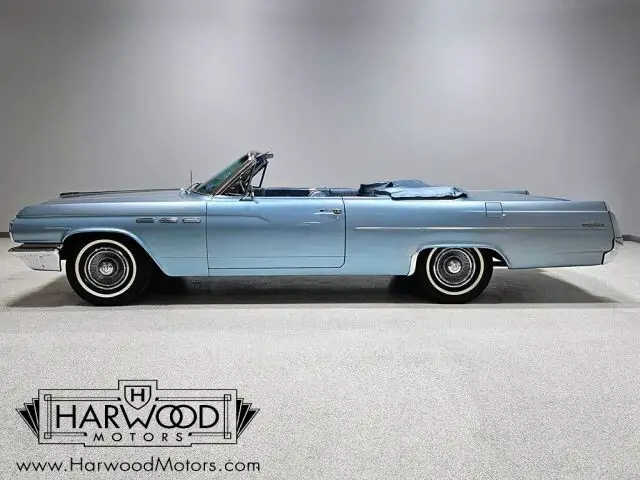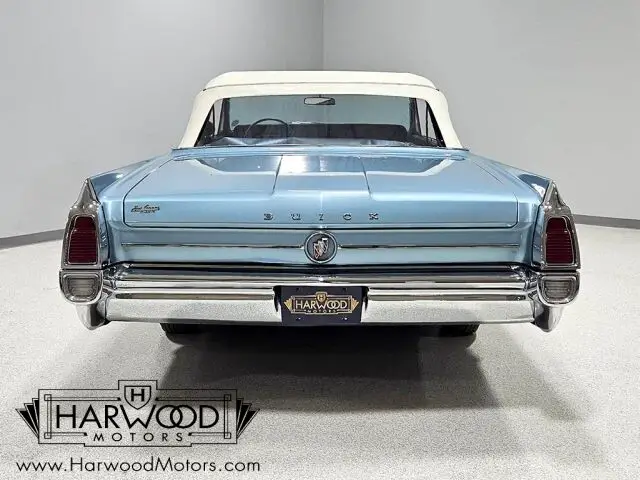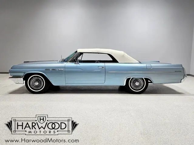 Buick knew who they were in 1963. The full-sized lineup of cars included some serious luxury backed by performance that was quiet and understated, yet impressive. The Lesabre was the mid-range model, offering full-sized comfort without the full-sized luxury price. This handsome convertible was exactly what thousands of bank presidents and senior advertising execs drove in 1963--upscale yet not excessively flashy. In this car's case, the paint is an older repaint in the original Marlin Blue and it still shows rather well. Bodywork is quite good and the doors close with a solid sound that you'd all but forgotten was possible on a convertible. As a car that has never been fully apart, it has a robust feeling that's difficult to restore back into a car once it's been disassembled. There's a nice shine to the finish, the body gaps are quite good, and the icy blue suits the large ragtop rather well. There's still plenty of chrome on a 1963 Buick, all of which is in excellent condition--even the faux "venti-ports" on the front fenders show minimal pitting, which is very unusual. For a mostly original car, it's in fantastic shape!