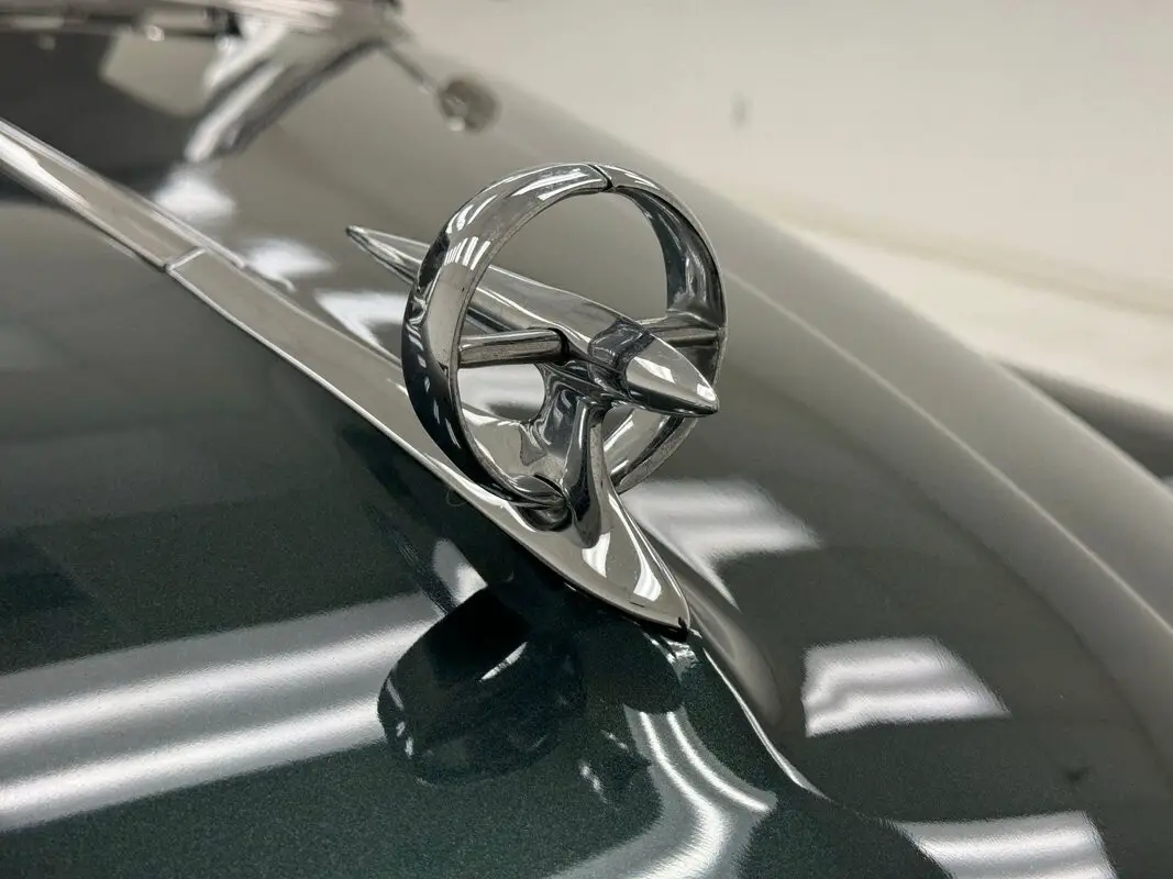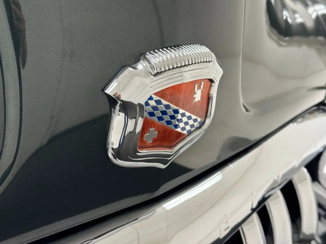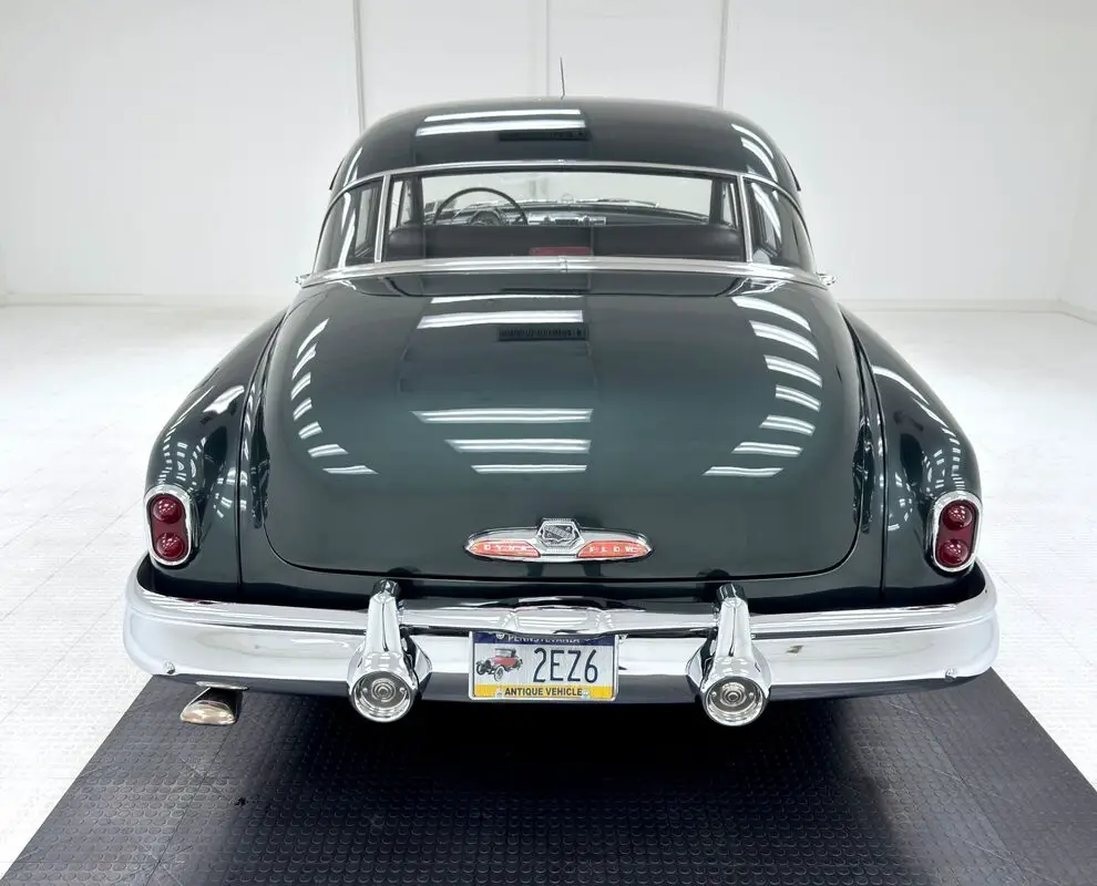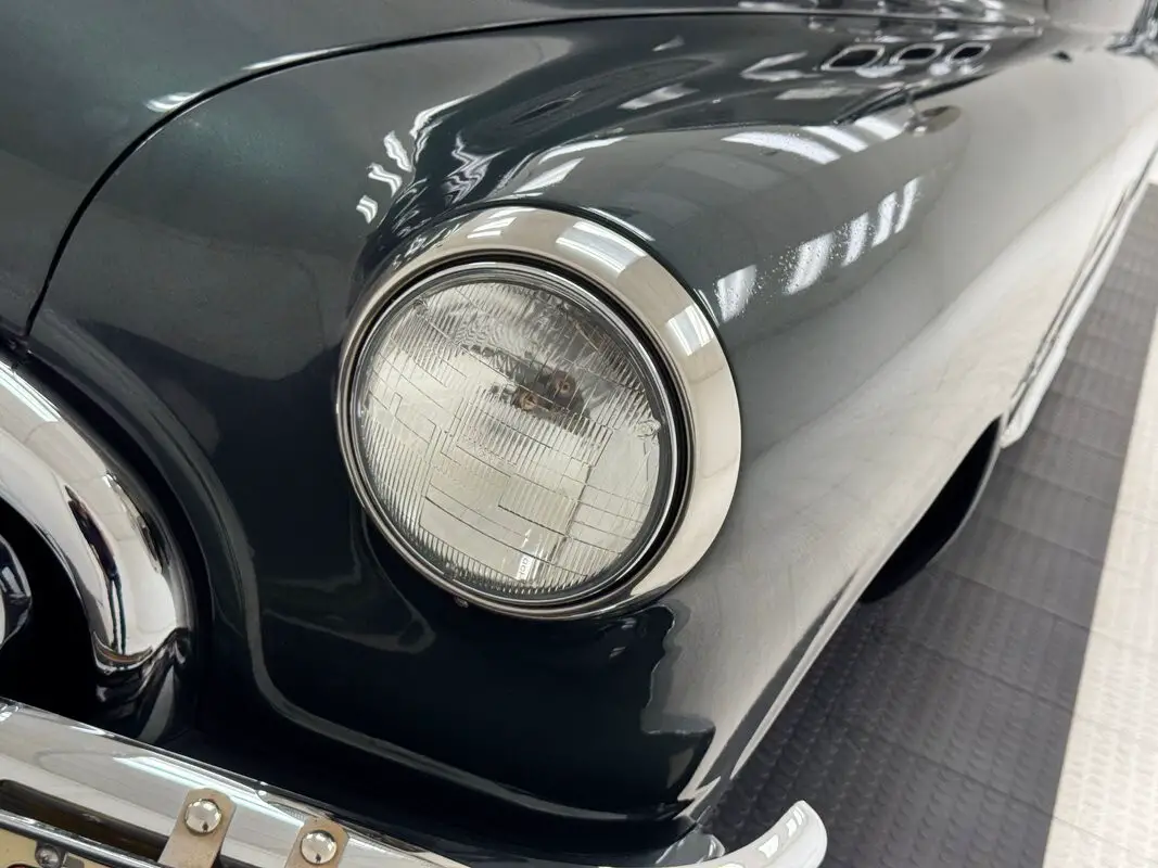 The most prominent feature in this and all the cars in the 1950 Buick line is the grille and front bumper, a massive, protruding, gaping array of chrome bars and vertical tusks that create a stylish and somewhat aggressive front end that has cattle shaking in their hooves. From there, the long hood rises over flat topped fenders and takes a trio of ventiports with it while the fender becomes the body line that lifts to form the rear fender. Allendale Green is the color here, one of an astounding seven different greens available in 1950 and it adorns the 15-inch steel wheels dressed up with beauty rings and Buick hubcaps. Diminutive tail lights ride the massive rear of the car with a dome shaped decklid behind a sporty 3 part rear window. Paint, trim, chrome, and emblems on the car are nice with imperfections limited to a few bubbles and lifted paint in the curve, and some uneven filler.