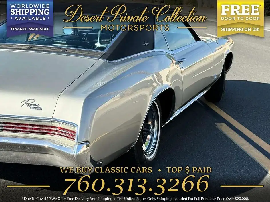 1967 Buick Riviera - 430ci V8 A/C Exceptionally Straight Car. Offered here is a beautifully preserved and well-sorted 1967 Buick Riviera| powered by the desirable 430ci V8 paired with a 4-barrel carburetor. This Riviera delivers strong performance and smooth drivability| exactly as these cars were meant to.. This example presents extremely well both mechanically and cosmetically. The car starts easily| runs strong| and drives excellent| with a solid| confident road feel. Equipped with working air conditioning  it offers a comfortable cruising experience.. The body is exceptionally straight| with no visible rust| and panel alignment is on point throughout -- hood| doors| and body gaps are clean and consistent| a key indicator of a well-kept example. The paint shows nicely and complements the Riviera's timeless lines.. The vinyl top is in excellent condition| adding to the car's overall presence and originality. Under the hood| the engine bay remains clean and correct| further reflecting proper care over the years.. Overall| this is a solid| honest Riviera that checks the right boxes: strong mechanicals| clean body| and great presentation.. For additional details or questions| visit: www.desertprivatecollection.com... Read the full description on our Website at: www.desertprivatecollection.com