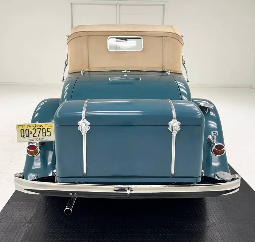 Behind the engine covers is a rebuilt 272.6ci inline eight cylinder, rated at 90 horsepower and mated to a 2-barrel carburetor. t's backed by a 3-speed manual transmission routing power to the rear axle and 4.27 gears. The car retains its 6 volt system.