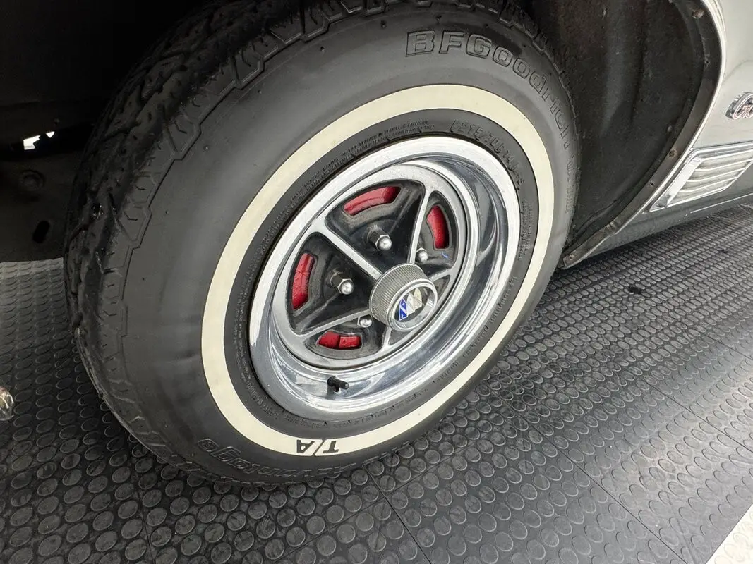 Browns and greens were all the rage in the late 60's and early 70's and this car's two stage Sequoia Green is a fitting sign of the times and a color that can look green in one light, and gray in another. A black vinyl roof over the pillarless cabin provides an open greenhouse and a handsome complement that is a perfect match for the 14-inch Buick Rally wheels and 70 series tires with white walls. Along with the coveted GS emblems on the car, racy trim includes straked fender vents in front and decklid trim that traverses the middle of the trunk, meeting the chrome bumper that surrounds the horizontal tail lights. Up front, the distinctive Buick face leads to a cowl intake below the windshield. Along with some fading black paint of emblems and trim, other imperfections include some discolored blotches, bubbles on lower panels, linear scratches, cracking paint, chipping, and scuffs.