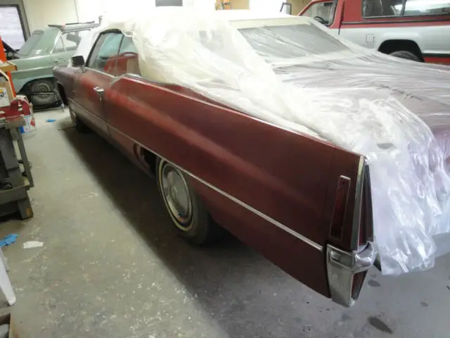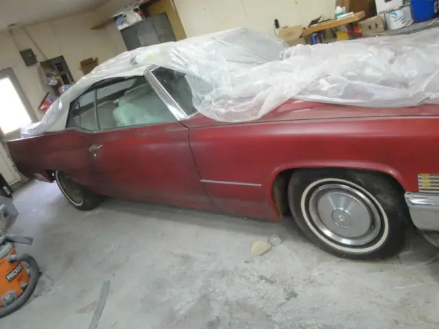 1970 cadillac deville,49,000 actual miles,had been searching for this car for years,finally found it,car was original paint,good original leather,nice door panels,dash,beautiful original red carpet and floor mats,bought car 2 years ago,took to body sho, agreed on price to replace fenders,remove trim,repair and repaint ca, wrote a check for 5000.00 to start repairs,finally 1 year later car was ready for paint,bought new to, pads,cables,deville scripts,rubber seals for top and any thing else i found to upgrad, cant remember everything but it is inside car with this sale,anyway they repainted car WRONG SHADE OF RED,i was furious after 1 year,they sanded again and next thing i hear is shop closed,OUT OF BUSINESS,took 1 year to get car back and needless to say im done with this ordeal,car runs and drives well,ac blows cool,not ice cold but cant get r-12 so conversion is necessary,i would say fly in drive home but not in february because top needs replaced,,also car tires are shot from age,still has 1 original tire on it,my loss will be your oportunity to afford a rare caddy convt.if your willing to repaint and install trim,alot less work then when i started.