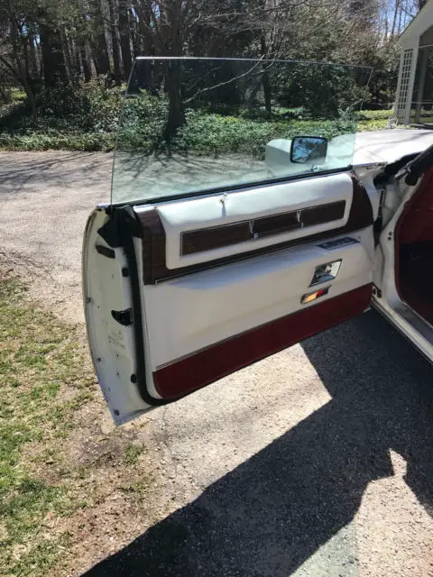 This Cadillac has 59,000 original miles and is finished in Cotillion White, white leather upholstery with red piping and dark red carpets. The engine is a 500-cid V-8 engine backed by a fully automatic transmission. This car is loaded out with all available equipment including the hard parade boot. Unique to this special car are the wheel covers, they are painted in Cotillion white to match to the color of the body.