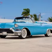 Professional red paint job in the right color over a structurally incredible body. Beautifully restored from the spotless red bottom to the new white convertible top. Almost every piece of chrome, stainless and pot metal has been redone. New lush red and white real leather interior, new dash bezel, new instrument cluster and gages, and electronic eye on the dash. Optioned with power windows, power seats, power top. Correct numbers matching 365 engine with the correct rebuilt dual quad carburetor set up which is topped off with the famous bat-wing air cleaner assembly. I has a rebuilt 4-speed Hydra-Matic automatic transmission with extremely low mileage, power brakes and power steering. Rolling in style on correct chrome Kelsey Hayes Sabre wheels and new wide white tires. This 1957 Eldorado Biarritz stunning unique rear-end design featured a low, down swept fender line capped by a striking in-board fin. This concept was used for only two years which why these cars are extremely desirable. The Eldorado was further distinguished by the model name above a V-shaped rear deck ornament. The rear fender and deck contour was trimmed with broad, sculptured stainless steel beauty panels. Also new for this year were "shark" style fins pointing towards the back of the cars. The previous owner spared no expense in the restoration. Like the rest of the car, the trunk is professionally restored in matching red plush carpet with a correct full size factory 15 inch chrome-finish Sabre-Spoke wheels which were standard on the Eldorados. The pictures of the undercarriage say it all. This beautiful Eldorado Biarritz Convertible has had an extensive frame off restoration as seen by the gorgeous floors, frame and all of the new parts. Rolling on brand new rechromed Sabre wheels, this Cadillac is a true Iconic masterpiece.