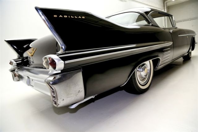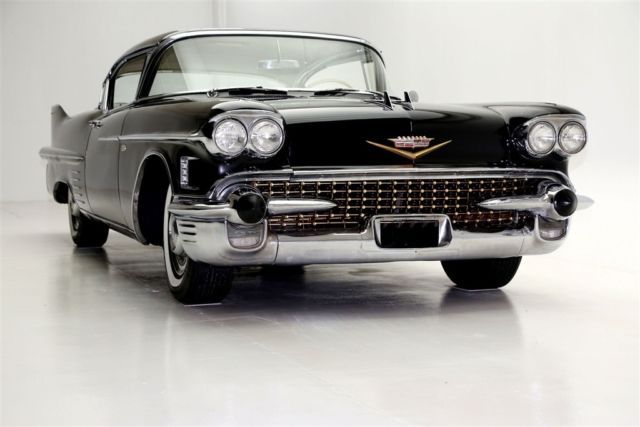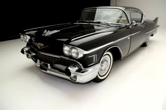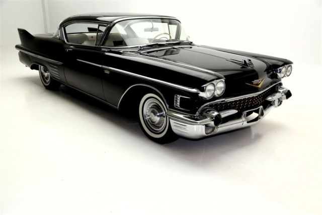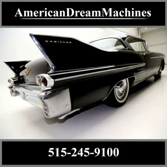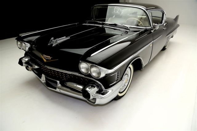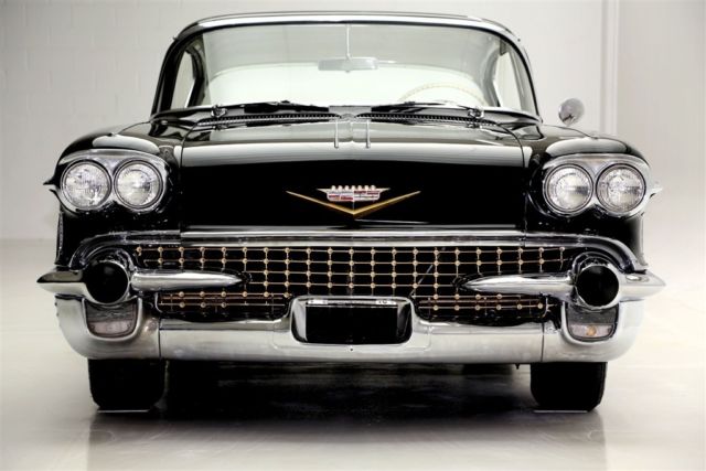 This "SURVIVOR CAR" is structurally beautiful with gorgeous body lines. Very original 1958 Cadillac Series 62 with a lot of well preserved originality. This Jet blackCadillac two door hardtop is painted in factory black. It is an older paint job that has held up well with some light patina. Blackand white is a very desired color combination. Incredible solid body and floors in factory original condition intact from bumper to bumper. The chrome and stainless are original and are a testimony to the preservation of the car. The front bumpers, grill and side chrome show very well for being 56 years old. The back bumper and bumper ends show a little more patina and should be rechromed if the car is repainted. The interior is mostly original and is in amazing condition for it's age. The dash and instrument cluster are in good original condition as are the door panels and the new headliner. The engine compartment is beautifully detailed. It was recently serviced by theprevious owner after an extendedclimate controlled storage. That recent serviceincluded brake service, new battery, full tune up and fresh fluids. This original numbers matching Cadillac runs smooth and is a nice quiet car and original in near all aspects. It's hard to find a 1958 Cadillac in this great original condition. Please call with any questions and we would be happy to answer!At American Dream Machines we normally have over 100 cars in stock. Our #1 Goal is to make our customers happy with the cars we sell. This is not an easy goal to achieve when selling 40, 50 and 60 year old cars. We highly recommend that ALL CUSTOMERS call our staff and have very detailed discussions regarding overall condition of any classic car they are considering buying. American Dream Machines is located in the center of the Heartland in Des Moines Iowa. Our staff has Midwest values and they will make every effort possible to represent our customers best interests and accurately describe the cars we sell. All older cars have older parts. If they had all new parts, they would be new cars.