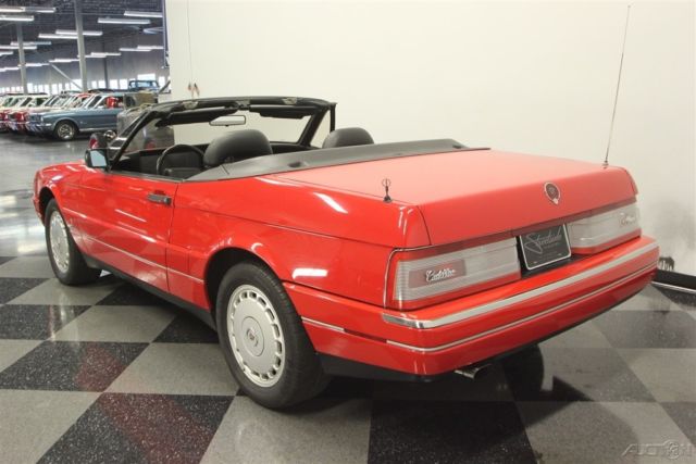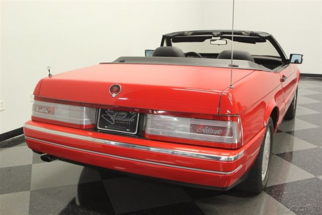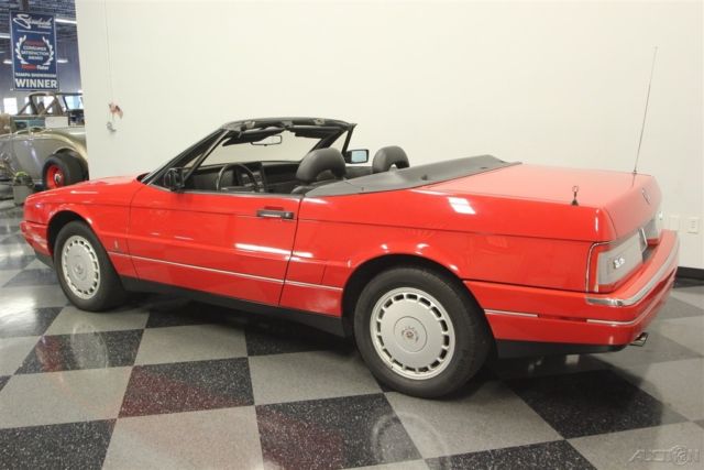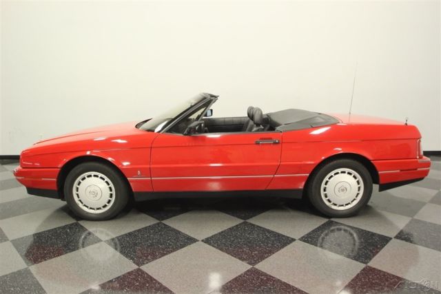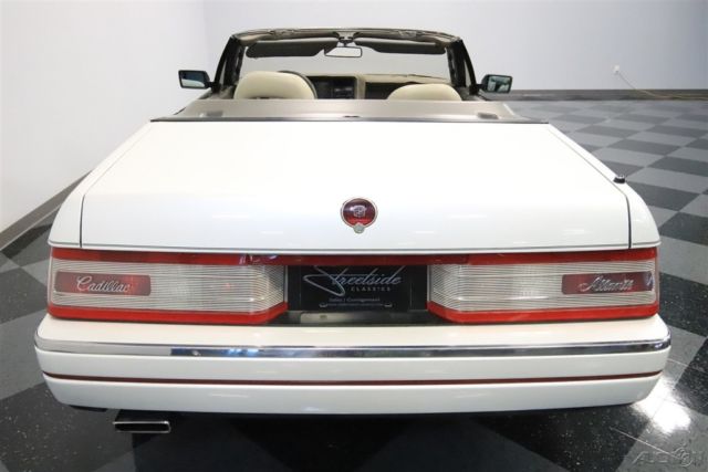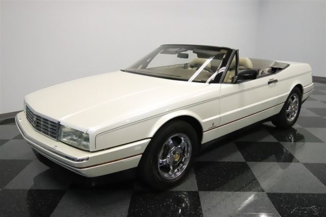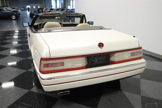 The right colors combine with a nicely preserved presentation inside & out to deliver a nice 1992 Cadillac Allante. So the attraction of this V8-powered droptop goes well beyond its affordable price. The Pearl White color is great to have on a sunshine-friendly droptop. After all, it has an extra hint of radiance that gets amplified every time the sunlight hits it. This is done particularly well on this example, because this is believed to be the original application. And the straightness of the body panels tell you the whole car has been treated with respect its whole life. The Allante has one of the best styles of the era, because after all, the bodies were designed and built in Italy by Pininfarina. Yes, the same people who designed amazing Ferraris. And a hint of that prancing horse attitude is seen in the red line that distinctly surrounds the body. You might have also noticed this has a full black pinstripe package, and that looks particularly nice against the black folding roof. And while the Allante has plenty of European style, there's also room from some American-style brightwork on the optional 16-inch Vogue wheels. This is a modern classic, and so the interior delivers modern luxury. You and your passenger get bucket seats by the masters at Recaro. Not only are they power adjustable to the ideal position, but they're also finished in a supple leather. Just like the exterior, everything inside looks and feels like it has been treated with care since day one. They built this to be a true driver's machine, and that's why all the controls are surrounding you. It includes luxuries like power windows, power locks, a digital information center, and the premium AM/FM/CD/cassette stereo. Plus, the automatic climate control means keeping cool even with the top down in the summer season. A modern classic also means modern safety features like a driver's airbag and anti-lock brakes. Under the hood is the original 4.5-liter V8 motor. It really looks like a time capsule with the clean presentation and all the right factory decals. More importantly, it has received the right care over the years, and we have the maintenance records to prove it. It's a terrific fuel-injected powerhouse that fires up like a modern machine should. It delivers the right mixture of power and torque to be good off the line and ready for effortless cruising. The same goes for the four-speed automatic transmission w/overdrive. This has a fully independent suspension and Pirelli tires to deliver a European-level ride quality. Add in cruise control, power steering, and four-wheel disc brakes, and this is the ideal grand touring machine. The sale comes complete with a reproduction window sticker, owner's manual, maintenance records, and service manuals. So you know you're getting an impressive and well-respected modern classic for the money. Don't miss out, call today!