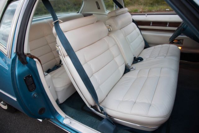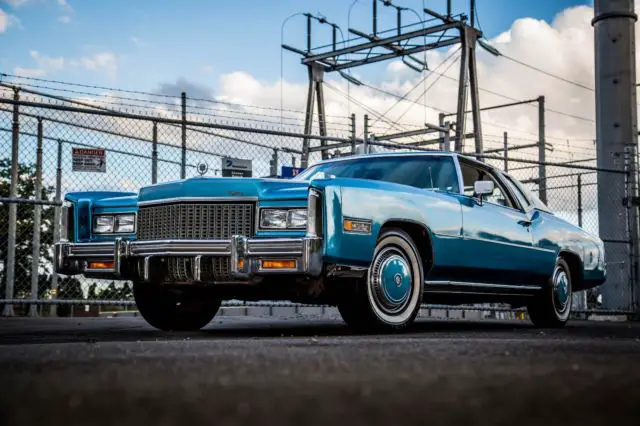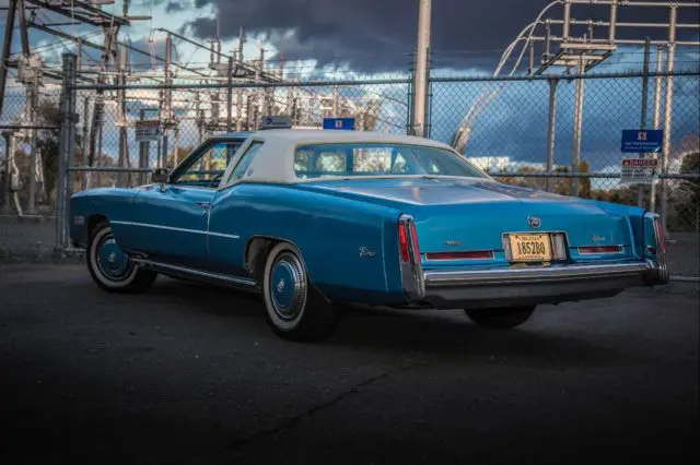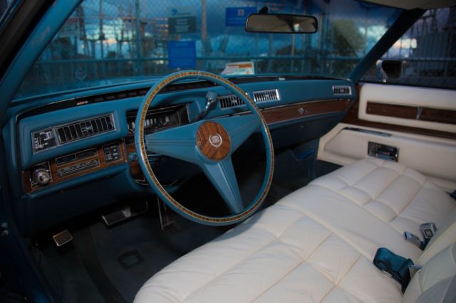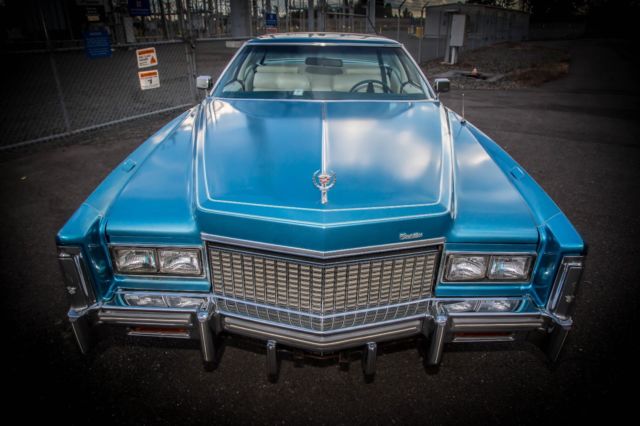 Up for sale is one very good example of a 1976 Cadillac Eldorado custom ordered Creme hard top! This Cadillac will go great in any collection with original paint in Ice fire blue metallic, the body is in excellent condition with no prior accident history and a 1 owner car with all the state inspection's and paperwork to confirm it is a true 33K mileage car! This car was purchased from the original owner that custom ordered this car with all the features direct from cadillac and has original owner's manual and both original key ste's as well . With the white soft opera interior and headliner in like new condition the beautiful exterior pops and makes this Cadillac one of the few cars that looks just as good sitting still as it does cruising down the road. Pop the hood and the huge, freshly tuned 500 CI motor looks right at home and all other components work as they should. Points of interest that we addressed were the heater core which has been replaced as well as some of the coolant and hydraulic hoses. The carb has been rebuilt replaced spark plugs, cap, and wires and the entire AC has been serviced and many parts replaced. At the time the photos for this ad were taken the dash was not in the car but I will assure you that it is in pristinecondition and there are "NO" cracks in it at all! I just installed a new retro look modern stereo, speakers and antenna for up to date quality sound with a AUX attachment. The chrome bumpers are both in very good condition and is a quality piece that only Cadillac could produce. The interior is exactly what you would expect from Cadillac, Big, comfortable, and full of luxuries. The white leather is in exceptional condition with the padding and cushion being just as nice. This Eldorado includes, AC, digital AM/FM with AU, Cruise, Power Brakes, Power Steering, Power Locks, 6-way Power Seats, Power Windows, Telescopic wheel, Seat Belts, Leather Interior, Wood grain package,White Walls, Hub Caps (custom painted to match the exterior, and Radial Tires. The paint is all original with a few spots touched up to contain minor rust blemishes but please understand this is original paint so it does show some normal signs of being a 42 year old car. The usually horrible degradation of the bumper filler have been addressed and replaced with factory copies of the ABS inserts and have been painted to match along with the hub caps to give it a modern look. The car runs and drives like you would expect a Eldorado to and really is a pleasure to cruise in. It is ready to be driven or would make a great car to restore or customize considering it's incredible condition, your choice. These cars are going for all kinds of crazy prices but I would like to see it go to a good home so the best offer closest to our asking price will get it! Thanks for the interest. Doug.