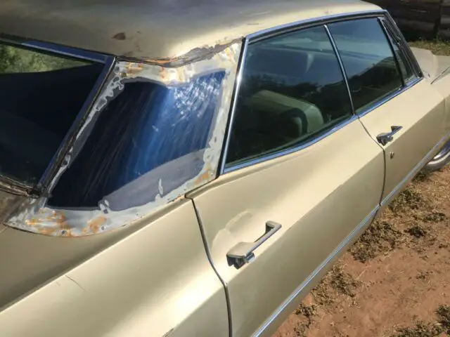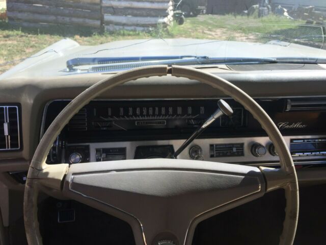 This automobile is absolutely fabulous. It is like driving a land yacht. I just do not have the time for it and it deserves a good home. It is 98% original, it has the original air filter housing and it still has point type ignition. It runs and drives great and has been very reliable. The climate control system does not work and the seats need to be recovered. At some point in the past the driver door was repainted, see the photos. It had a vinyl top that dried up and because of that rust chewed through the body on both sides of the rear window. The rust holes are 2 inches in diameter and were repaired with sheet metal panels, see photos. The rear window has a leak at the top also. The power antenna functions properly and the radio makes noise. The windshield has a few cracks. This is a great solid car with very minimal rust underneath. A short video of this caddy can be seen athttps://youtu.be/Xx6xU5HWH9k. Thank you for looking