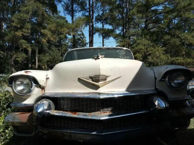 CADILLAC LOVERS HEAR SHE IS A 1956 2 DR HARTOP. ITS A ROLLER. ITS READY TO REPOWER. ITS A.SOLID CLASSIC SHE NEEDS RESTORATION. ITS NICE INSIDE. GOOD GLASS AND STAINLESS. GOOD DASH ORIGINAL RADIO. SHE ORIGINAL. JUST WAITING TO BE RESTORED. I HAVE NO KEY SO I CANT OPEN THE TRUNK. THE FUEL TANK IS STILL UNDER THE CAR. THE DOORS.OPEN AND CLOSE GOOD EVEN THE FLIPPERS WORK GOOD. I CAN DELIVER THIS CLASSIC TO YOU VERY VERY.VERY REASONABLE. IM IN THE TRUCKING BUSINESS. AND YOU WILL GET.IT DELIVED .QUICK. CALL.ME.AT. 7064966195. GET IN TOUCH WITH ME.WE.CAN GET.IT DONE. BID TO WIN