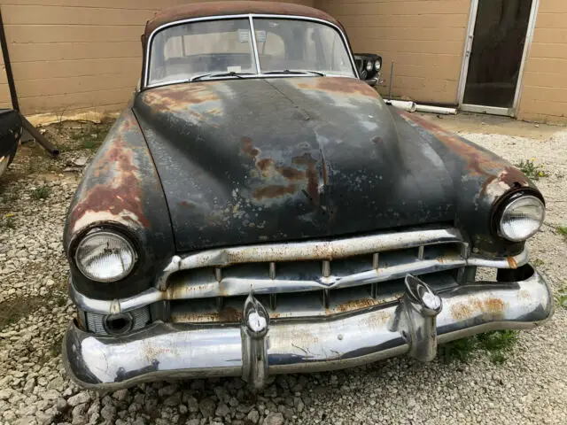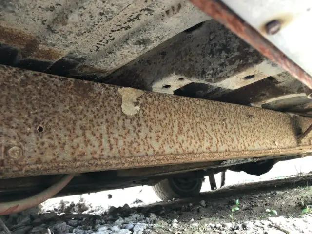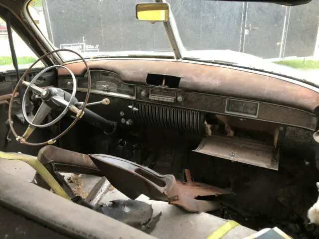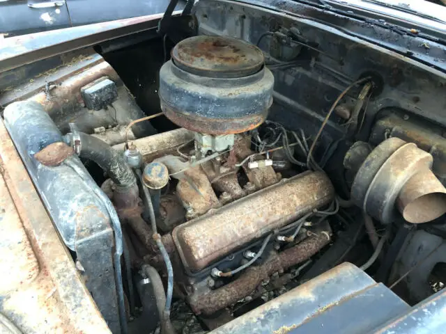 The engine appears to be the original '49 unit and all the manual transmission pieces are intact - column shifter, bellhousing, flywheel, pedals, driveshaft, radiator, rear axle, etc. The frame appears solid and much of the floors, rocker and trunk aren't rusted through.