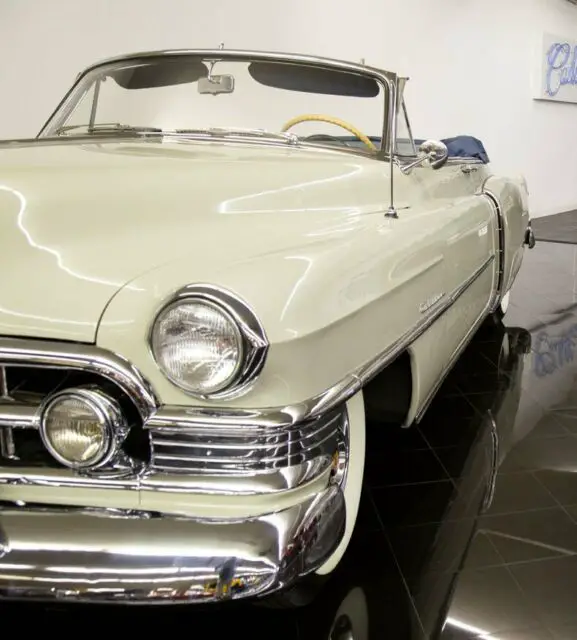 Offered here is a beautiful 1950 Cadillac Series 62 Convertible Coupe finished in factory code correct 10- French Gray over 52- Dark & Light Blue Leather interior! The classic Cadillac seen here has been handsomely restored and has been fitted with a matching Blue Haartz cloth convertible soft top. It's original, number's matching 331ci V8 engine lies under the hood faithfully fitted with a factory Carter WCD dual downdraft carburetor, Delco-Remy 6-volt generator charging system, oil bath air cleaner, and a Hydra-Matic 4-speed automatic transmission. Additional features include power convertible top & windows, full dash instrumentation, Syncro-Matic Selector AM Radio with a rear seat speaker, front & rear bumper guards, fender skirts, reverse lights, Guide glare-proof rearview mirror, automatic heater, period-correct BF Goodrich Silvertown 8.20-15 wide whitewall tires, full wheel covers, front fog lamps, license plate frames, and a windshield washer system!