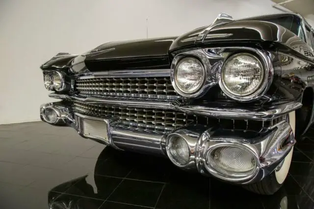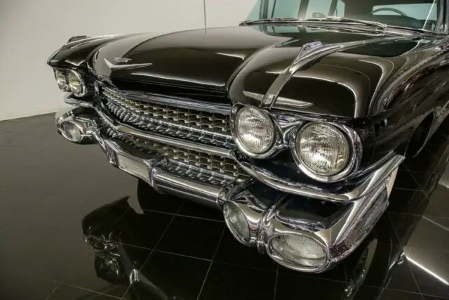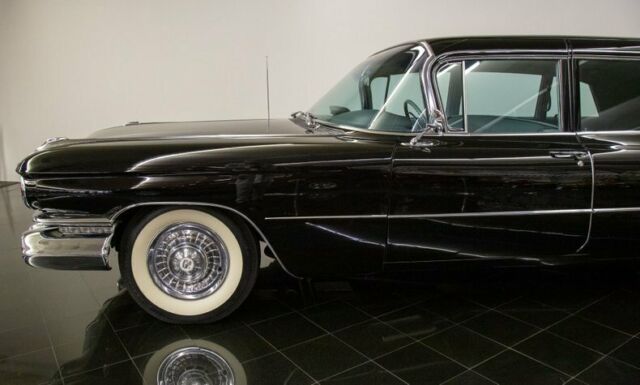 We couldn't be more excited to offer this 1959 Cadillac Fleetwood Series Seven-Five 9-Passenger Sedan finished in factory code correct 10- Ebony Black over code 80- Light Gray wool broadcloth & Light Gray Nylon Beford Cord interior! Features include 390ci V8 with 325 horsepower, automatic transmission, dual zone air conditioning, power brakes, power steering, Signal-Seeking pushbutton AM radio with power antenna, rear seat radio controls, power windows, power deck lid release with power pull down, power front seat, rear folding jump seats, day/night rearview mirror, polished wheel covers, Dunlop Gold Seal "78" Sport wide whitewall tires, Autronic Eye, correct T3 headlamps, E-Z-Eye tinted glass, intermittent wipers, front fog lamps, fender skirts, door edge guards, rear reading lamps, foot rests, and assist handles!