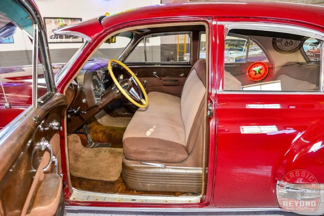 The interior of this 1948 Cadillac Sedan denotes the brand notorious attention to detail and luxury. If you are a fan of 40s cars this one will not disappoint you.