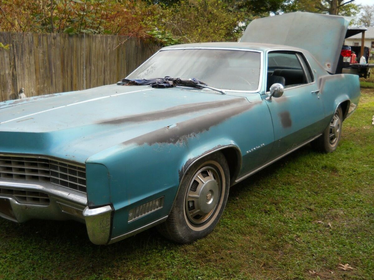 1967 Cadillac Eldorado first year front wheel drive hideaway head lights 429 V8 producing over 340 hp body is razor straight with no accidents no frame damage etc . and no vinyl top ( rare most coupes have vinyl tops and they rust underneath ) trans was redone from age of car motor was resealed new hoses vac lines and components installed muffler is starting to get loud and will need to be replaced as will one brake line may be done before purchase . car has cloth and vinyl/ leather interior driver side seat has a seam rip from age . original paint s on the car no repaints have been done wearing in spots to the prime, rust issues are minor with small spot bottom driver side bottom rear quarter and a small spot under floor matt driver side roughly 5'' some spots on the cluste, dash pad is excellent so is the bumpers with no hits or dings,small pin holes around rear wheel well which is an easy fix rest is all good including the trunk floor etc. AC will need to be converted to a more friendly version of R12 I have had this car for over 20 plus years and am sad to let it go but have limited space now ' car was driven on weekend, Rags are wrap around the wipers to protect the windshield in case the wiper dry rots and not to scratch the glass these are the first picture after the car was taken out of storag, 1967 body style was produce one year only turn light are in the bumper not the fende, hood is different from later models .. this car runs and drives fine the trans shift correctly and will take minimal amount of work meaning paint to get this car to be a great daily driver ( i also have a treasure chest of parts that i have collected over the years that can be sold for an additional cost to the buyer if interested including bumpers glass, tail lights which are rare finds extra wheels etc ).. good luck in biding