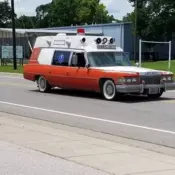The car is pretty original and in pretty damn good shape overall. The car is NOT running and hasn’t in years. It's complete down to the original gurney still in the back and the oxygen tanks.