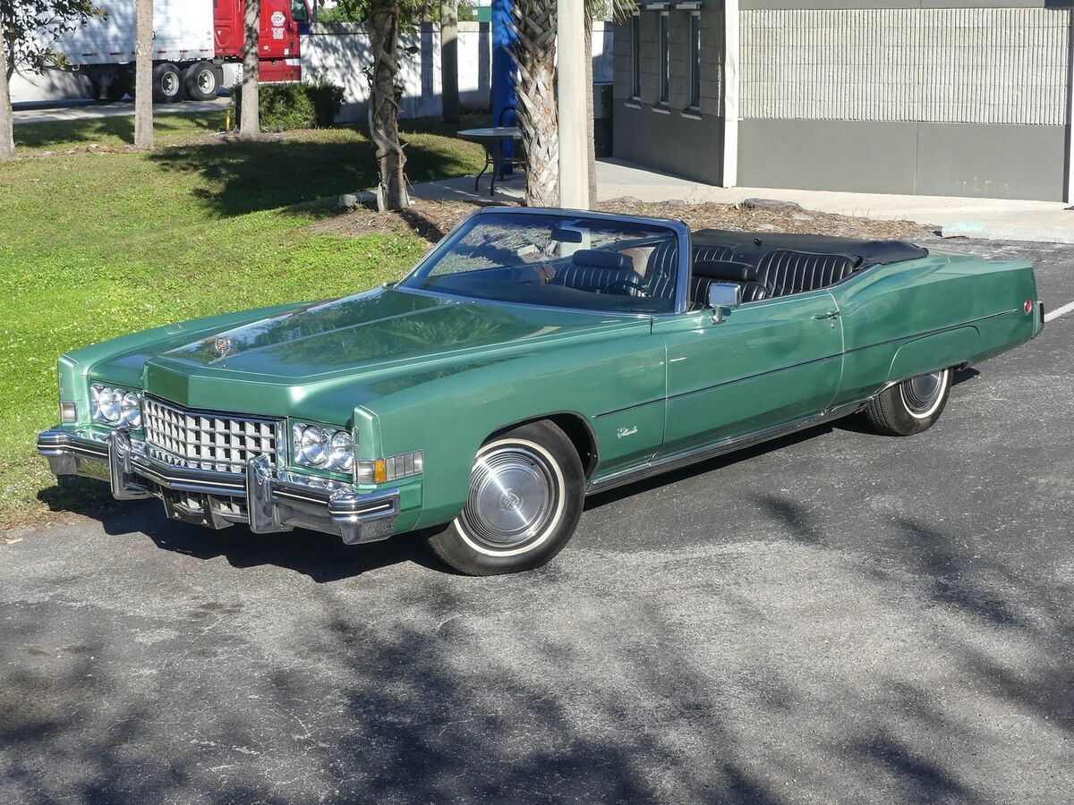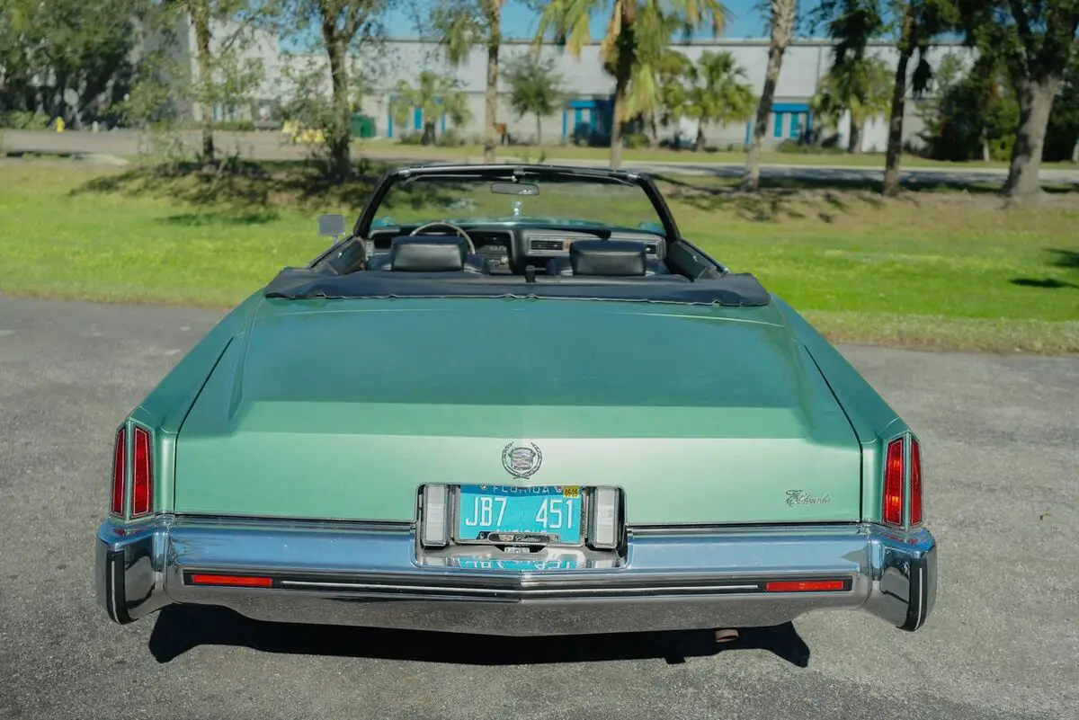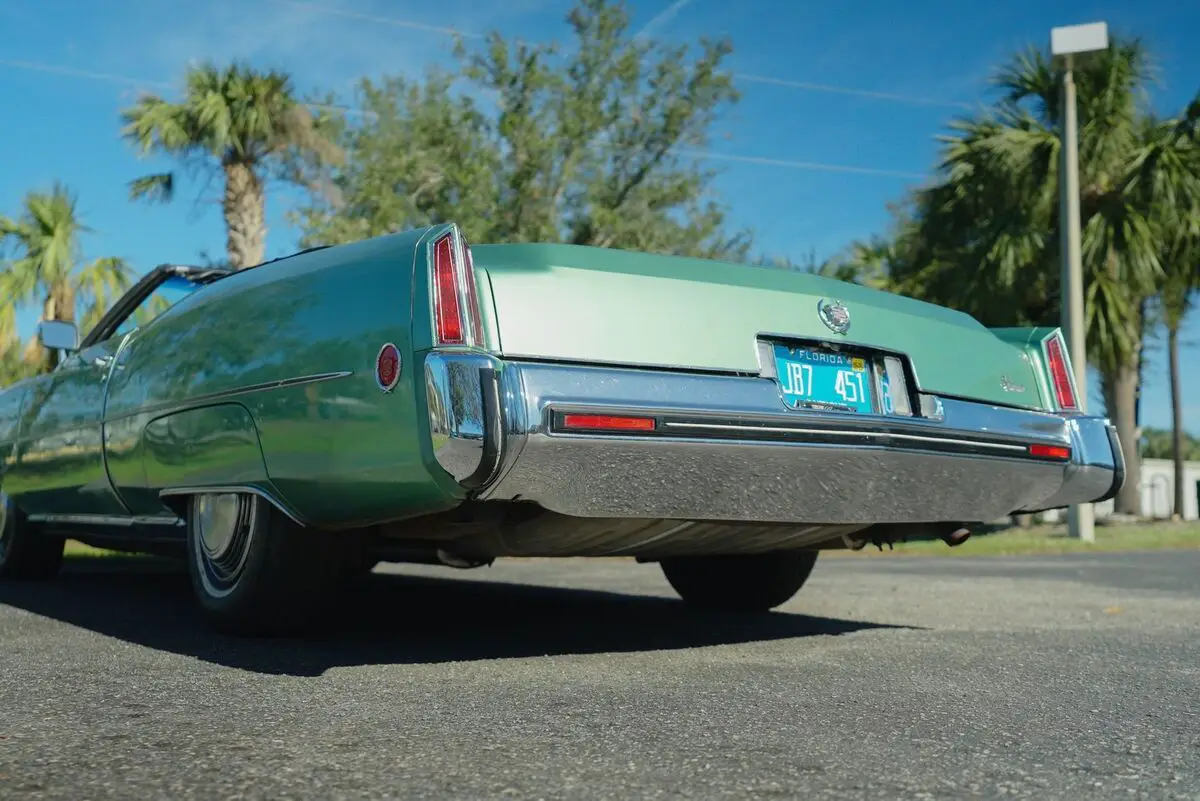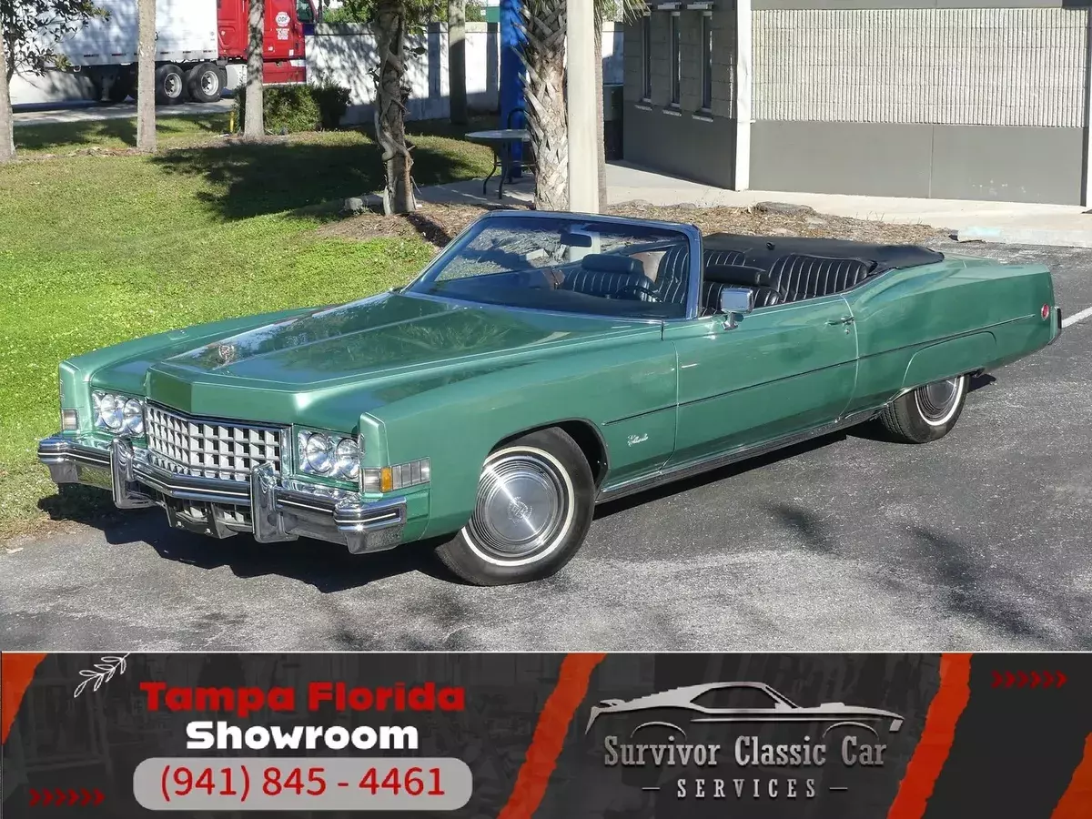 If you're looking for a super clean 70s Cadillac Eldorado Convertible, look no further! The color combination on this 1973 Eldorado is absolutely spectacular! Viridian Green Firemist Metallic paint accented by a black soft top and black interior really grabs your attention. The odometer shows only 42,354 miles that are documented as actual on the title.