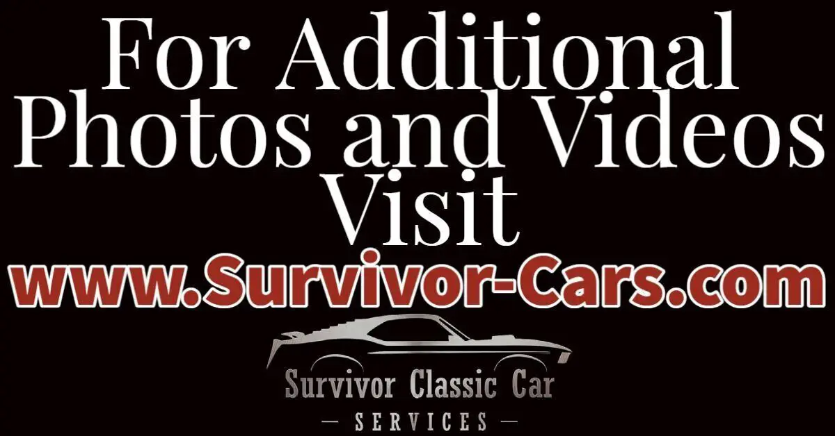 This vehicle is available to view by appointment only. Please call the office to make an appointment. For additional information on this and our other classic and collectible cars for sale, please visit www.Survivor-Cars.com. For assistance, please call the office at 941-845-4461, text our cell phones at 813-358-8830, or email us at info@Survivor-Cars.com. If you are unable to come view the vehicle for yourself, we highly recommend you send in a third-party inspector on your behalf. We are located between Tampa and Sarasota. We are 90 minutes from Orlando and Fort Myers. *Potential purchaser understands it is their responsibility to verify condition and accuracy of information when purchasing from Survivor Classic Cars. It is the sole responsibility of the potential purchaser to inspect the vehicle, or have a third-party inspection performed on the vehicle before purchasing. The potential purchaser is relying solely on their own knowledge and judgement about any vehicle purchase