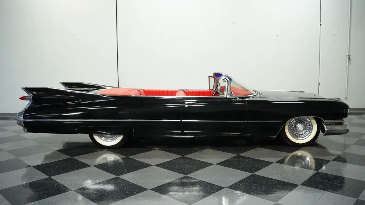 Vehicle Original VIN : 59L041777• 390 V8 Engine • 3-Speed Hydramatic Automatic Transmission • Single 4-Barrel Carburetor • Power Drum Brakes • Stock-Style Suspension • Dual Flowmaster Exhaust • Black Paint • 15-inch Wheels with OE Hubcaps • Factory Convertible Windshield Pillar • Signature Cadillac Fins • Dual Side Vent Windows • Red Vinyl Interior with Bench Seat • Power Steering • AM Radio • Column Shifter • Original Hard Rock Café Atlanta Display Car (1992-2009) • First of 15 Hard Rock Cars Built • Built by Rick Smith of Longview, TX • Documentation Book with Build Photos • Original Hard Rock Installation Blueprints • Signed Glove Box by Builder
