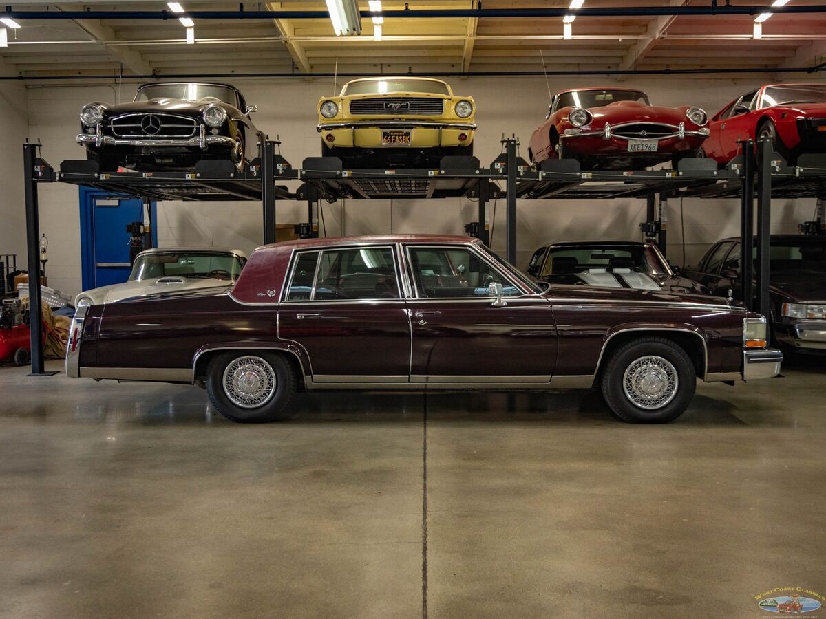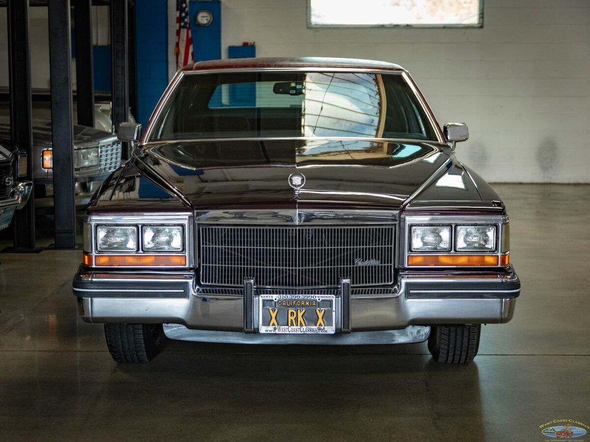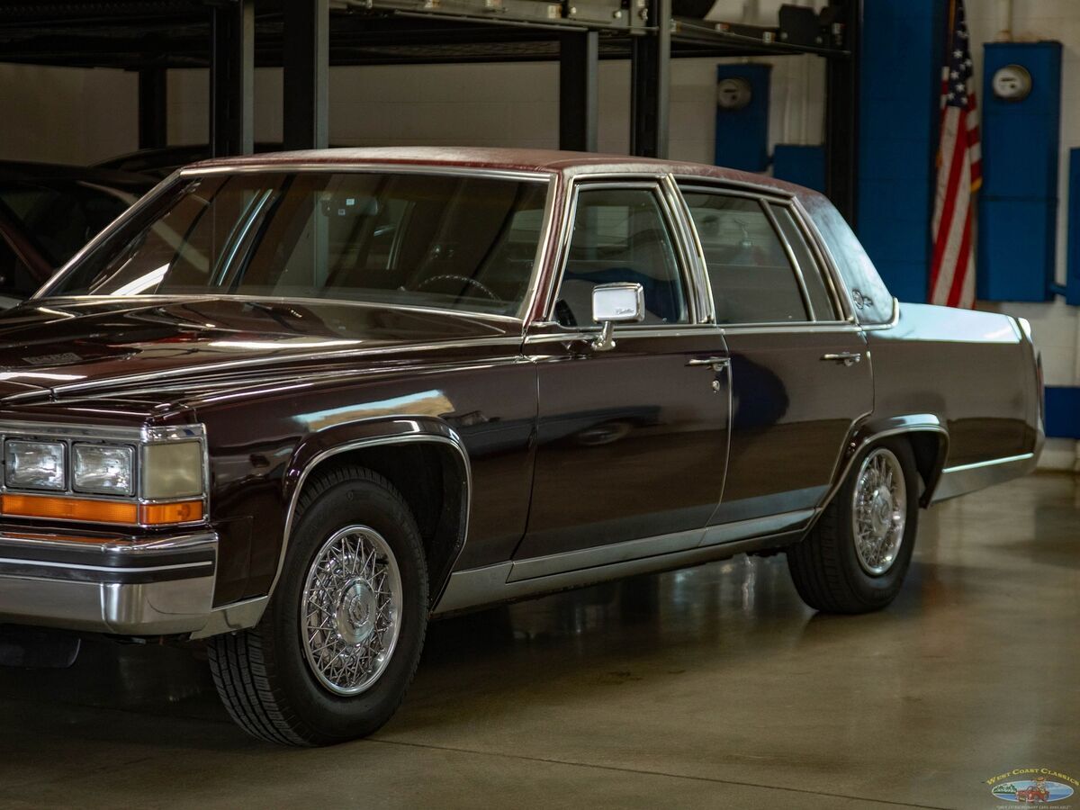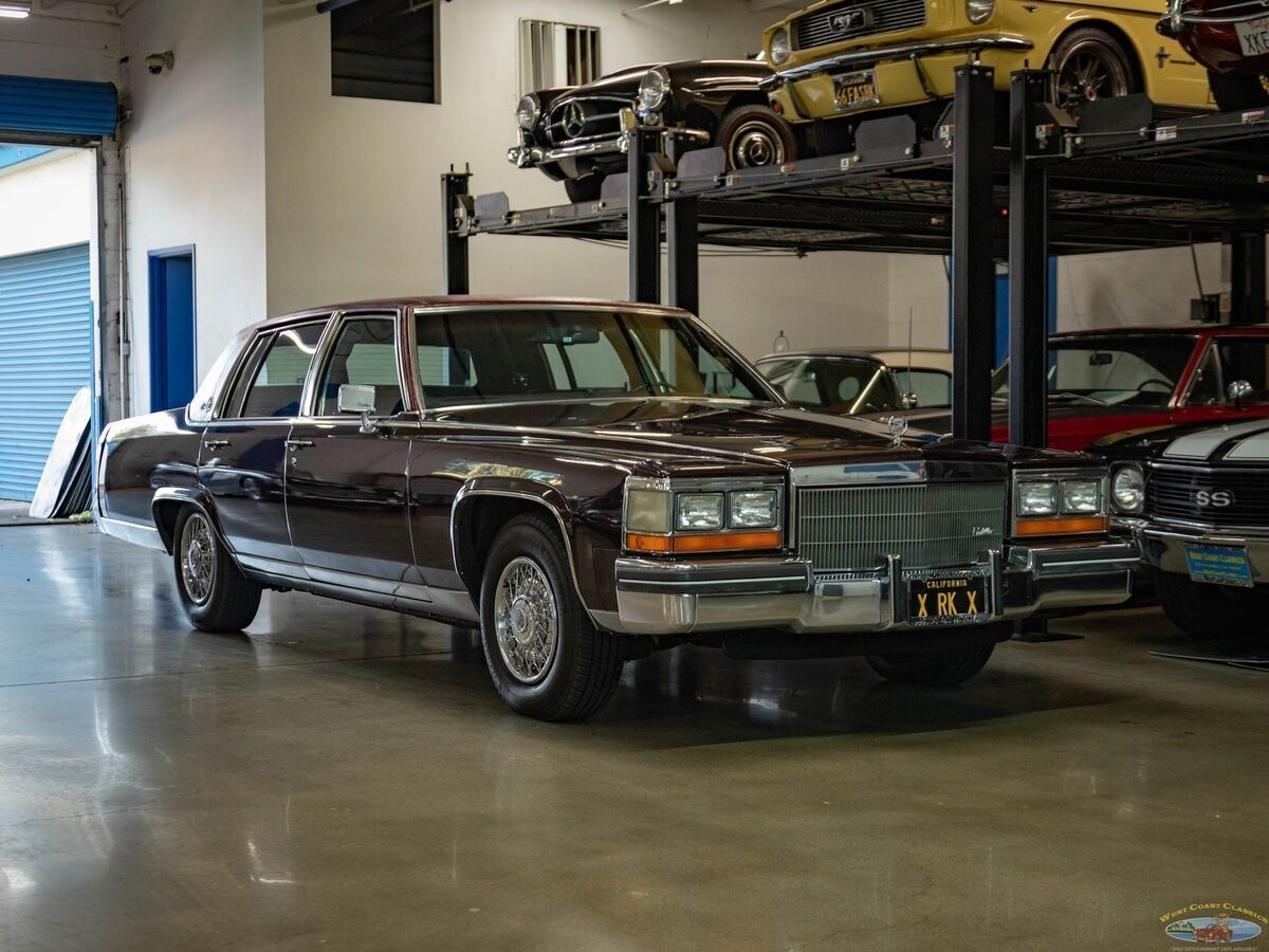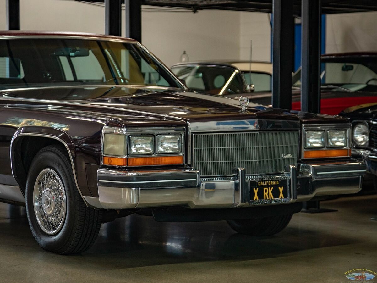 West Coast Classics are proud to present a beautiful example of this 1985 Cadillac Brougham d'Elegance 4.1L V8 sedan in its original 'Dark Red' (color code 79) paint with a matching 'Dark Red' Velour heather cloth interior and with only 59K original miles! The car has rare factory added options including:D'Elegance Package with Brougham button tufted Venetian velour heather cloth pillow style seatingSpecial Door pull handlesD'Elegance script on glovebox and on outside rear sail panelsWire Wheels DiscsAM/FM Radio CassetteTilt Steering & TelescopeElectronic Level ControlCruise ControlRear Electronic Heated Outside Mirrors & Window DefoggerIlluminated Vannity MirrorsGarage Opener TransmittorElectric MirrorsTwilight SentinelPower Trunk Lid Pull DownTrunk MateDoor Edge Guardsand standard options including:4.1L V8 4BBL engine4 spd automatic transmission with OverdrivePower BrakesPower SteeringElectronic Climate ControlPower WindowsPower Door LocksDual Comfort Front Seats6 Way Power Driver SeatFull Vinyl RoofOpera LampsAccent MoldingsIlluminated Entry SystemSoft Ray GlassRemote Control MirrosAutomatic AntennaLamp MonitorsCornering LampsAutomatic Parking Brake releaseObviously always garaged and with no accidents, for all intents and purposes a superbly kept and well maintained car! Owned and driven by only one obviously very careful and mature drivers since new - never abused - babied all the way!The original 'Dark Red' factory color paint is in very good condition and the matching and all original 'Dark Red' button tufted seats and interior is also in quite exceptional condition throughout with virtually no signs of wear. Every option is working as it should including the ice-cold A/C.This particular model must be seen and driven to be fully appreciated - the car drives as good as it looks with Cadillac's famous smooth and luxurious ride - no shakes or rattles and the considerable power of it's 4.1 litre 4BBL V8 engine purring almost imperceptibly under the hood! The engine is extremely strong and responsive, the transmission shifts smoothly through the gears and the temperature always remains cool.The Cadillac Brougham was a line of luxury cars manufactured by the Cadillac Motor Car Division of General Motors from the 1987 through 1992 model years and was previously sold from 1977 to 1986 as the Cadillac Fleetwood Brougham. The optional "d'Elegance" trim package introduced during the Fleetwood era remained available. The optional "d'Elegance" package introduced in the upscale Fleetwood trim line in the 1970s, offering even more luxurious appointments, including button-tufted seating and rear-seat reading lamps. Being body-on-frame, it was popular among coachbuilders who manufactured stretched limos and by Cadillac buyers who preferred the familiar combination of exterior size, heft, rear-wheel drive and an optional Chevrolet 350 V8.This is one very unique and ridiculously spacious and comfortable car with no real rivals in it's class - the real deal for a grand touring or long distance cruising sedan for ultimate luxury and comfort and this must surely be one of the finest examples available anywhere with low original miles of a primarily always dealer maintained and serviced flagship Cadillac 'Brougham d'Elegance' edition model with only 59K original miles available on the market anywhere today!