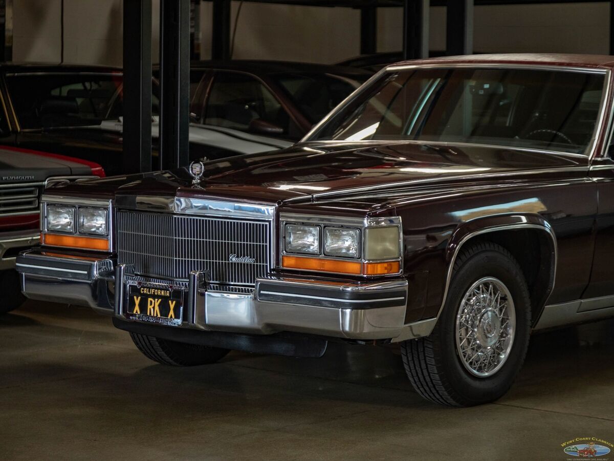 West Coast Classics are proud to present a beautiful example of this 1985 Cadillac Brougham d'Elegance 4.1L V8 sedan in its original 'Dark Red' (color code 79) paint with a matching 'Dark Red' Velour heather cloth interior and with only 59K original miles!