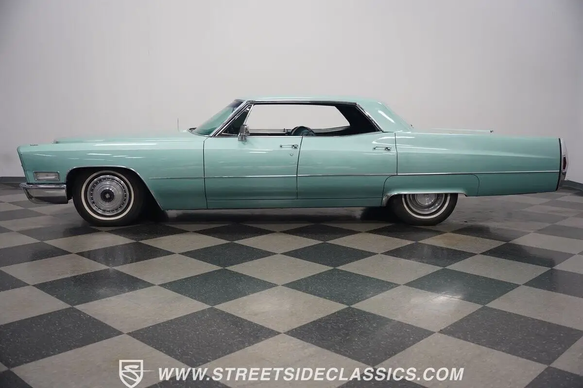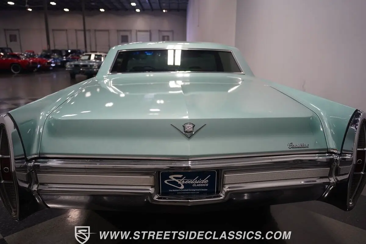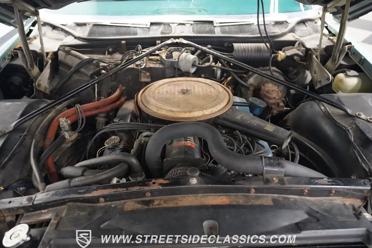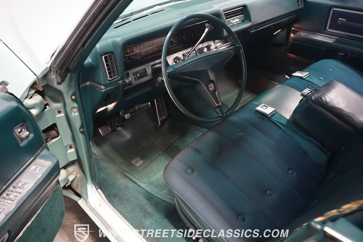 Vehicle Original VIN : B8233523HIGHLIGHTS: • 472 cubic inch V8 engine • TH400 3-speed automatic transmission • Power front disc brakes • Power steering • Dual-to-single exhaust system • Silver Pine Green paint (full repaint) • 15-inch wheels with factory hub caps • 235/75R15 tires • Chrome brightwork • Fender skirts • All-original green interior • Bucket seats with folding armrest • Cloth upholstery • Power windows • AM radio • Original owner's manual • Original warranty booklet with Protect-O-Plate • Miscellaneous parts in trunk • Picture of previous owner with the Cadillac