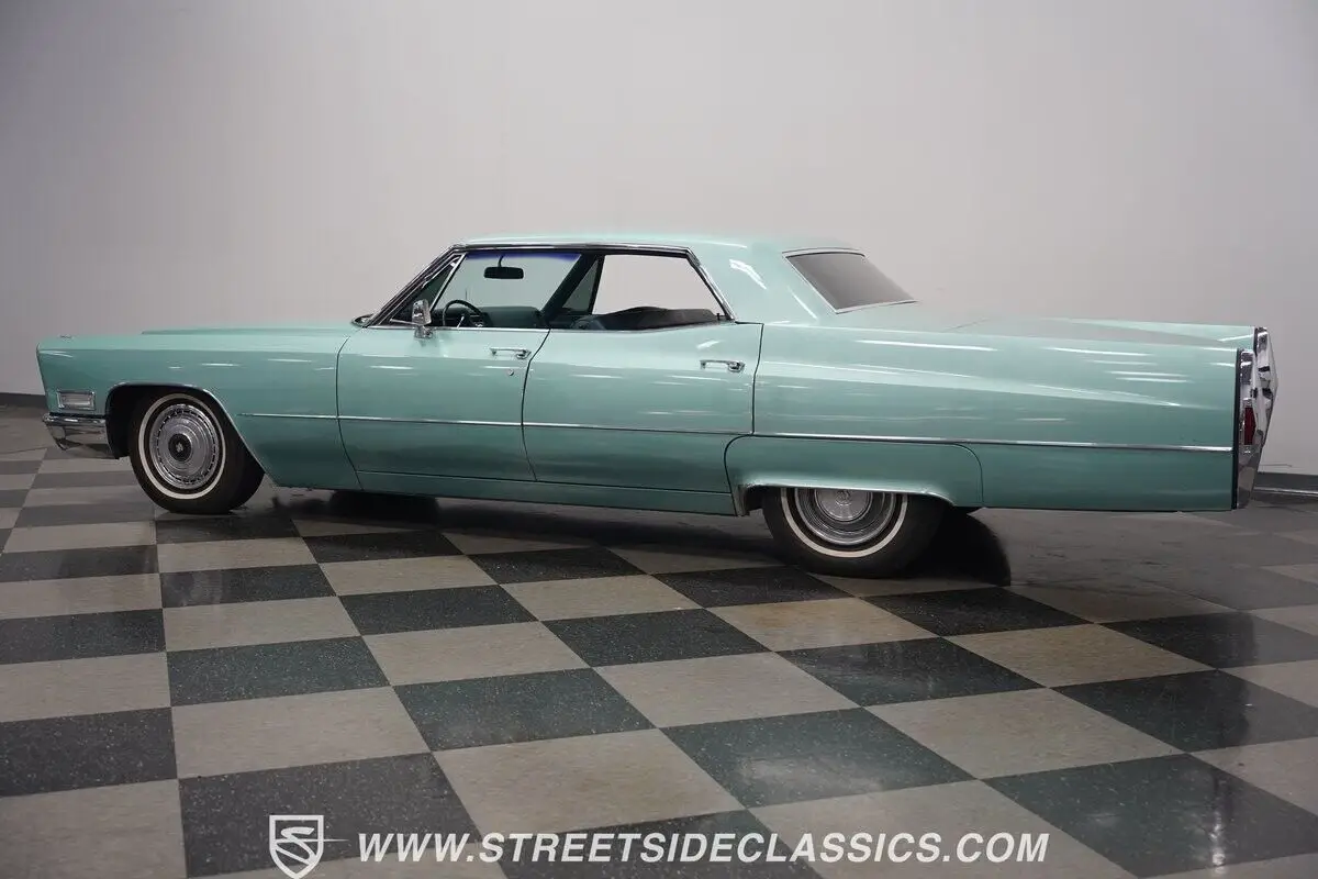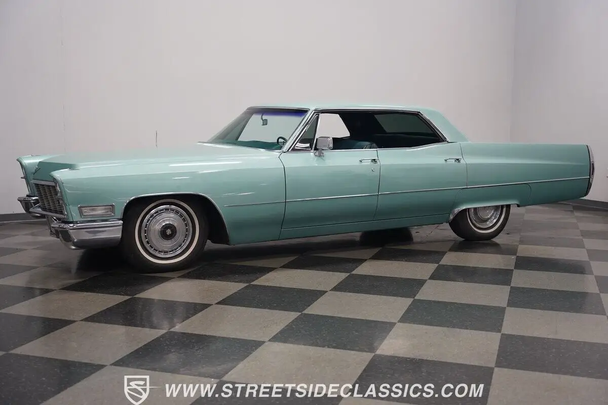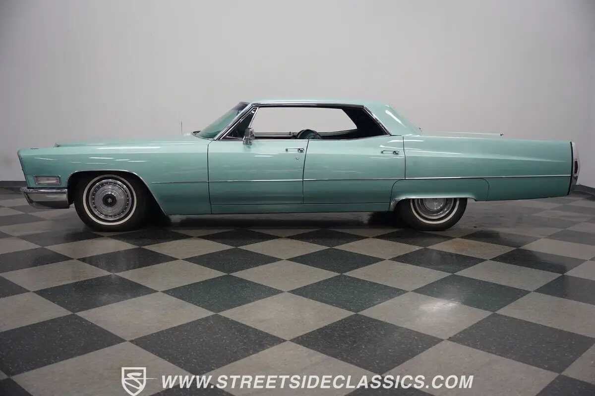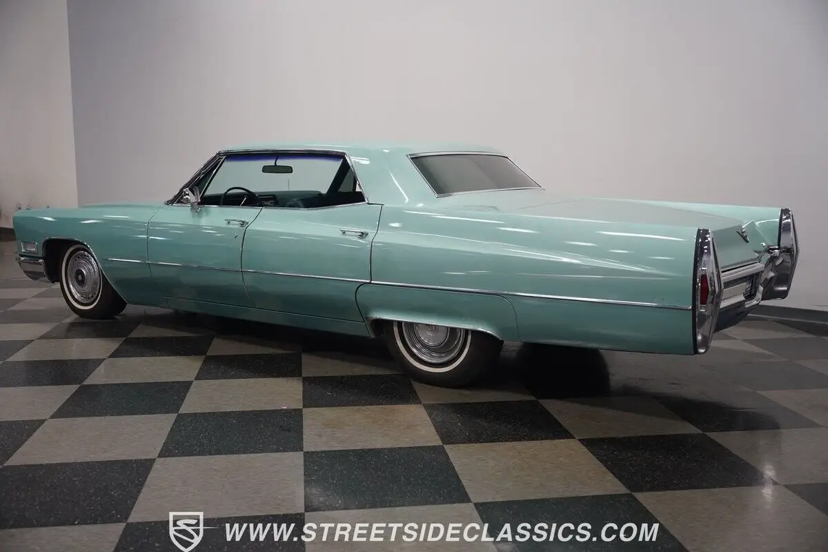 Vehicle Original VIN : B8233523HIGHLIGHTS: • 472 cubic inch V8 engine • TH400 3-speed automatic transmission • Power front disc brakes • Power steering • Dual-to-single exhaust system • Silver Pine Green paint (full repaint) • 15-inch wheels with factory hub caps • 235/75R15 tires • Chrome brightwork • Fender skirts • All-original green interior • Bucket seats with folding armrest • Cloth upholstery • Power windows • AM radio • Original owner's manual • Original warranty booklet with Protect-O-Plate • Miscellaneous parts in trunk • Picture of previous owner with the Cadillac