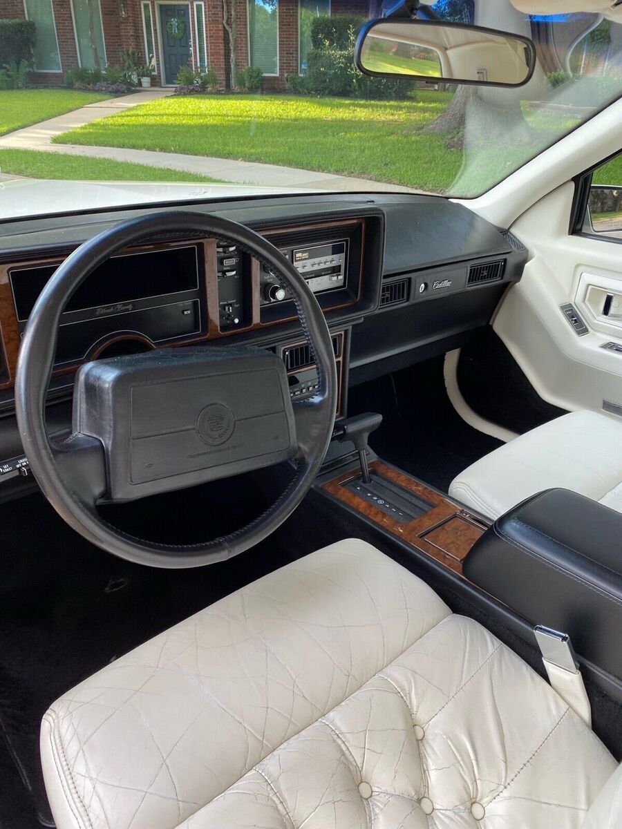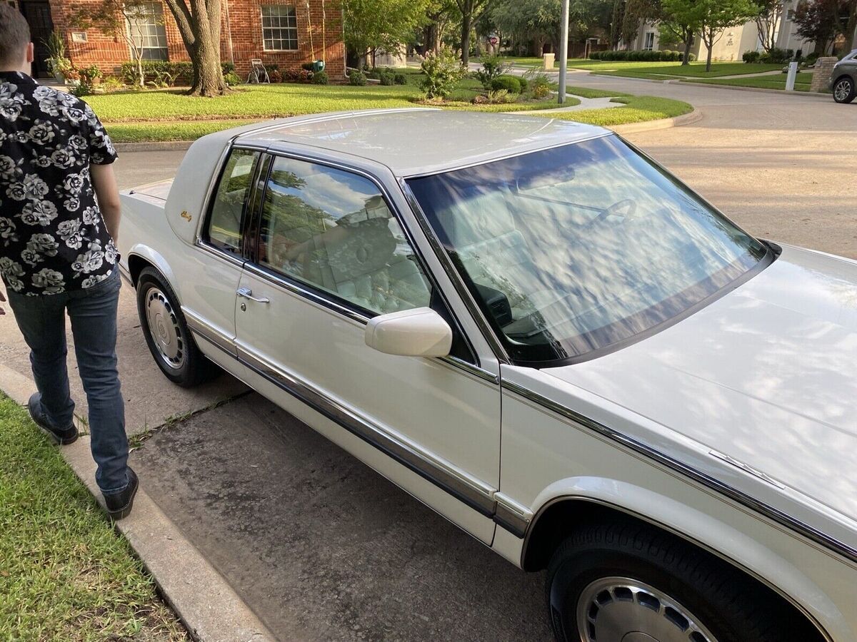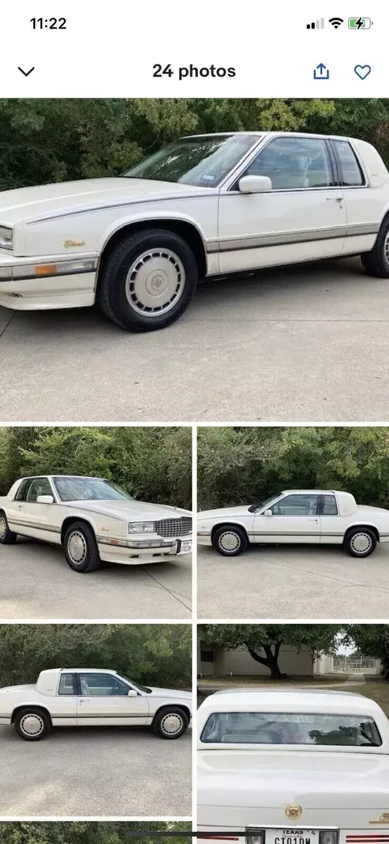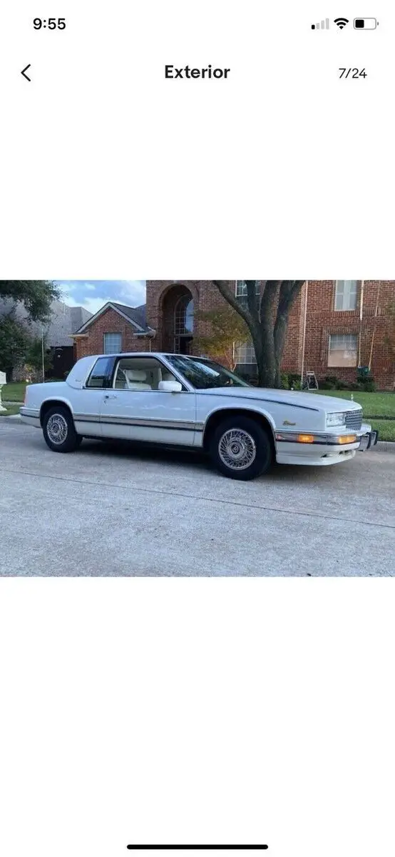 1991 Cadillac Eldorado Biarritz - original miles, 2 family owned car! Always garaged, non-smoker, all original paint and interior, zero rust. This is a very special car ordered in Triple White! Runs and Drives amazing! This is also the last year of the smaller 2 door Eldorado, and the LAST year of the Biarritz! Top of the line Cadillac –has everything you can imagine that made it extra special. This was also a special order car in Triple White – White paint, White Leather interior, White Landau (vinyl) roof! A very striking car! Get’s comments everywhere I go! Superb build quality too! This car has the 4.9L V8 engine in the front wheel drive configuration. 4 speed automatic overdrive transmission. Full digital dash package, electronic climate control, Bose Gold Radio (with cassette!), automatic ride suspension, 12 way adjustable seats for both Driver and Pass and they are crazy comfortable, Coach lighting outside, Gold package, and so much more! I have the original owners manual and documentation, and an original dealer service manual.The car is beyond clean – it has been well preserved. No rust whatsoever! 2 sets of wheels – the oem 15”wire wheels + the optional “touring” wheels in 16”. I just had the touring wheels completely refurbished and they are like brand new! Brand new Michelin Defender 2 tires ride and handle amazingly smooth ! The wire wheels give the car a different look if you want to change it up a bit, but the touring wheels, in my opinion, set the car off and make it ride amazing. You get both sets of wheels and tires! Previous owner had gone through this car and replaced almost anything that was not working correctly or just needed to be replaced – that includes: Brakes, catalytic converter, Battery, Belts, Hoses, All Fluids, All Filters, GM AC Delco Bosch Fuel Injectors, Fuel Pressure Regulator, Fuel pump, Fuel Filter, EGR valve, Cap, Rotor, Plugs, Wires, Radiator flush-n-fill with new coolant + the GM Tablets, and a few other things! I also just had a brand new AC system installed (AC Delco Compressor, Evap, Orifice Tube) Yes, this car can be drive across the country with no concerns over reliability! It runs amazingly well (like really really well!) and just drives superbly! The Fuel Injectors installed will also handle all the Ethanol fuel we have at the pumps these days, so no worries there! On the downside, the Bose Gold radio speakers don’t work in the front doors. The Bose speakers are available on ebay or you can send them off for are build, or have a modern stereo setup installed if you want Bluetooth/handsfree and all that. Has a minor leak on the transmission pan, but have a new gasket included. If you are looking for a “RAD” car to drive and have lots of fun at Car Shows, or if you want a really cool daily driver, this might be the car for you! It did place in the top 10 RAD Texas car show in Dallas! Would also be an excellent vehicle for younger drivers too as it’s still reasonably priced, very safe (they used real metal in the90’s), and has a ton of style! Make this your daily, weekend fun car, or enter it in the “RadWood” and other car shows! This car has a Clean/Clear TX title in my name.. Located in Dallas, TX area. Happy to assist the buyer in scheduling shipping if needed, but all shipping costs would be at buyers cost. If you are looking for an 80's or 90's type classic vintage car, this Cadillac is a very special car! Thanks!