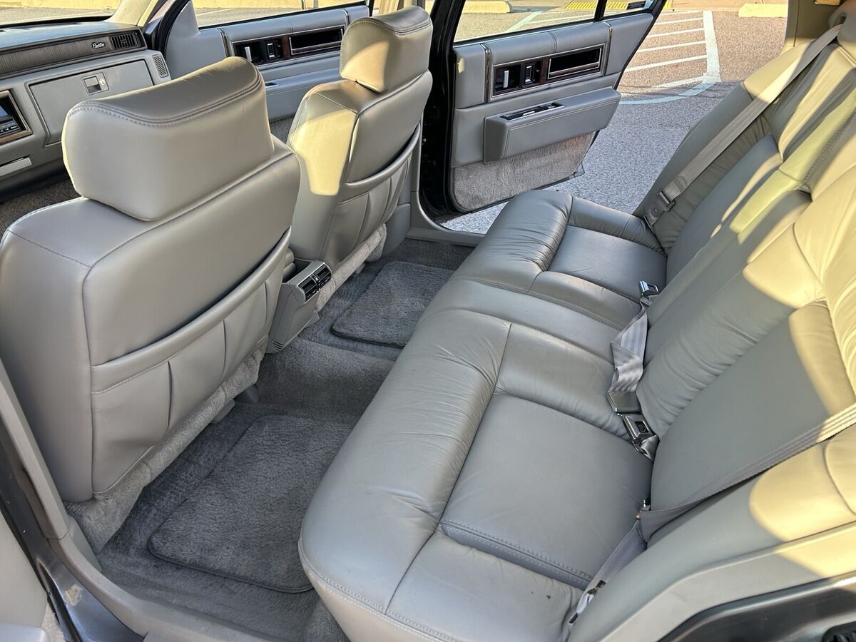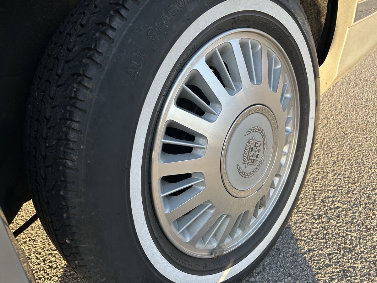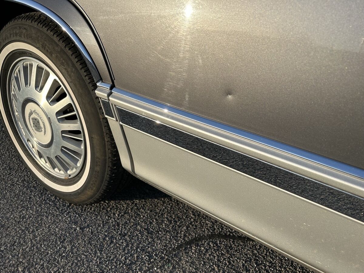 The car still has two original tires on the rear, yes that’s correct. Original from GM dated 1993! Again, it’s a 30+ year-old car that runs and drives excellent, Academy gray exterior, with light gray leather interior, in soft supple condition, the fabric headliner is in perfect condition, the carpet is very nice. The original floor mats could use a shampoo. The engine bay is clean, the chrome is very nice.