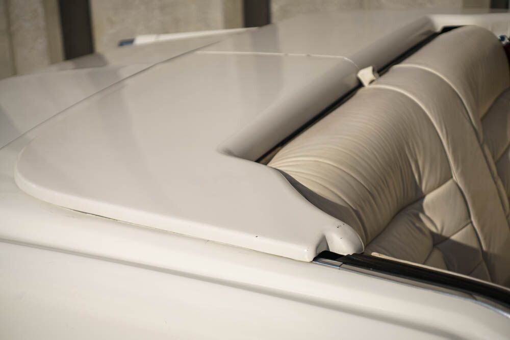This Eldorado ragtop was made during the third week of January 1976 in Cadillac's Detroit, Michigan assembly plant (VIN code Q). Dressed in Cotillion White (code 11), the big ragtop's paint and trim are in overall very good order with some signs of age present. The engine bay is very tidy and the large chrome bumpers fit tightly to the body.