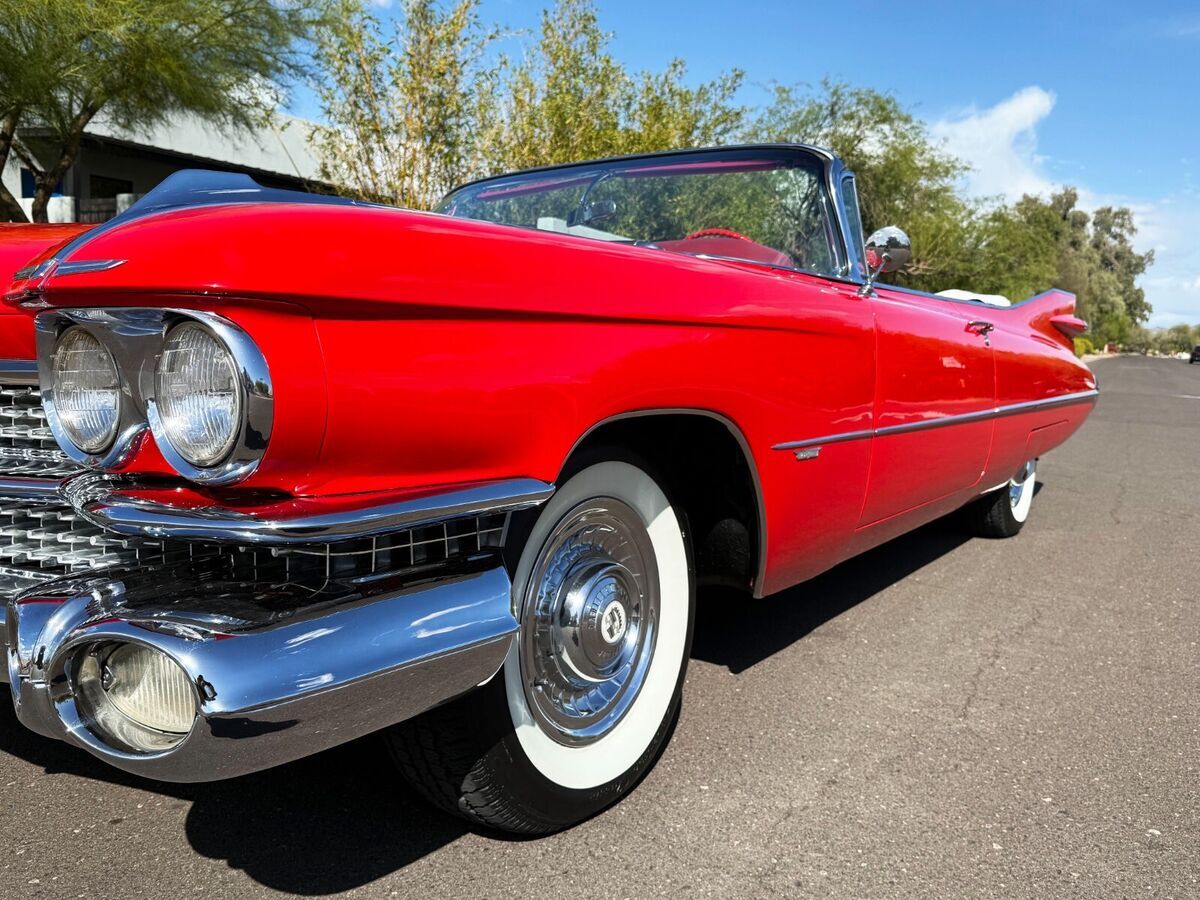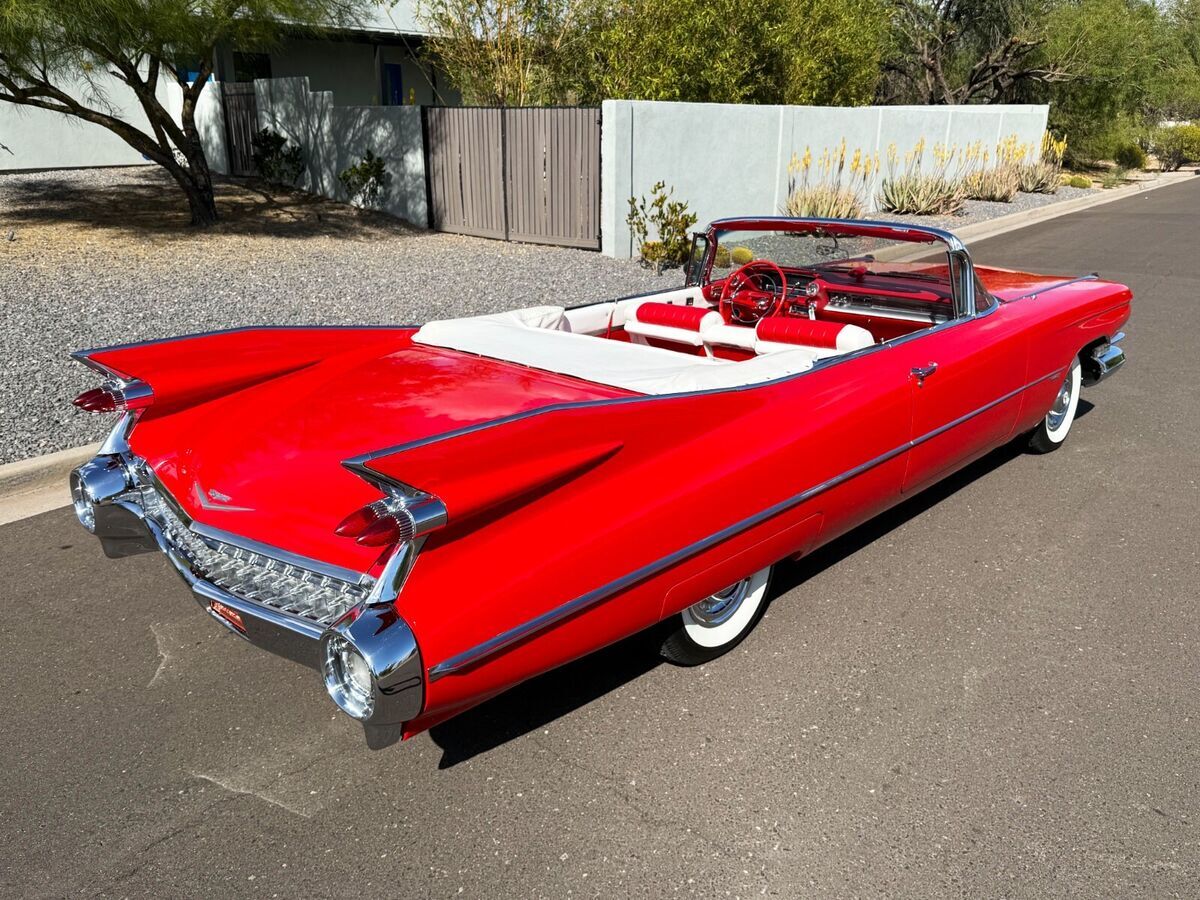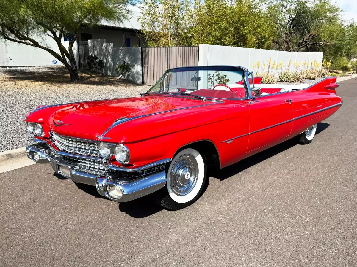 If you've been dreaming of owning the ultimate finned icon of the 1950s, this is the one. Presenting a stunning 1959 Cadillac Series 62 Convertible, a beautifully restored, high-end example of Cadillac's most legendary year. Finished in a jaw-dropping Seminal Red over a red and white leather interior, this factory-loaded classic is as straight as they come, with amazing fit and finish. It's turnkey, sorted, and ready to enjoy.