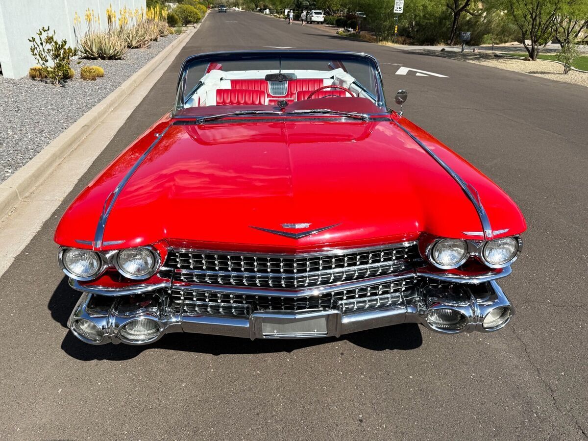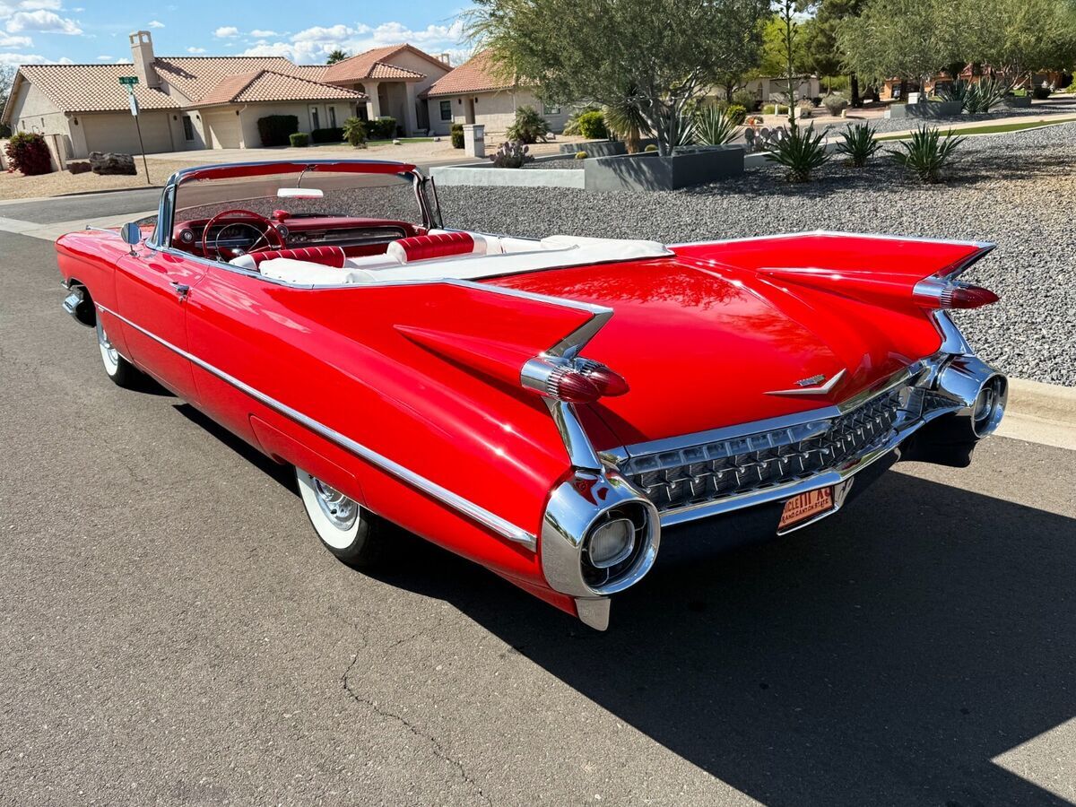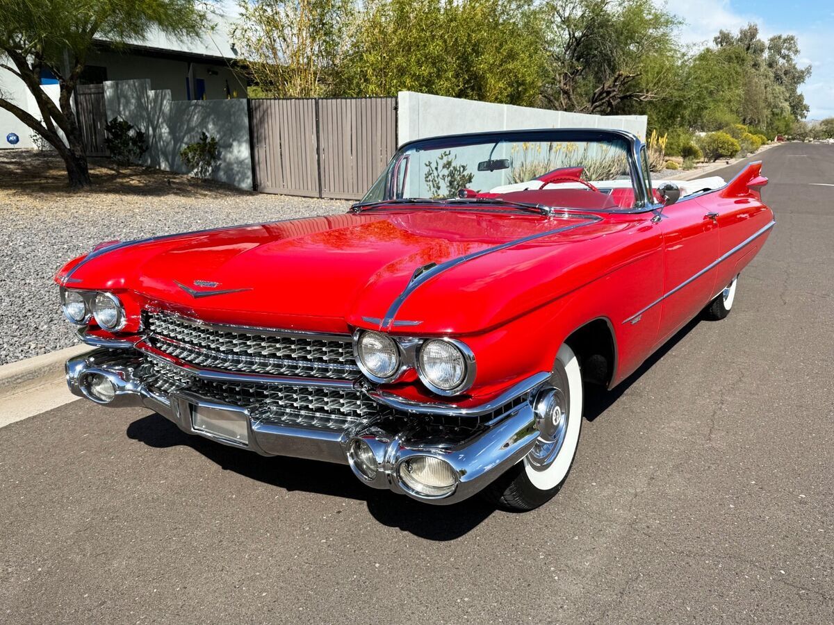 If you've been dreaming of owning the ultimate finned icon of the 1950s, this is the one. Presenting a stunning 1959 Cadillac Series 62 Convertible, a beautifully restored, high-end example of Cadillac's most legendary year. Finished in a jaw-dropping Seminal Red over a red and white leather interior, this factory-loaded classic is as straight as they come, with amazing fit and finish. It's turnkey, sorted, and ready to enjoy.