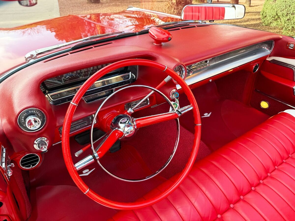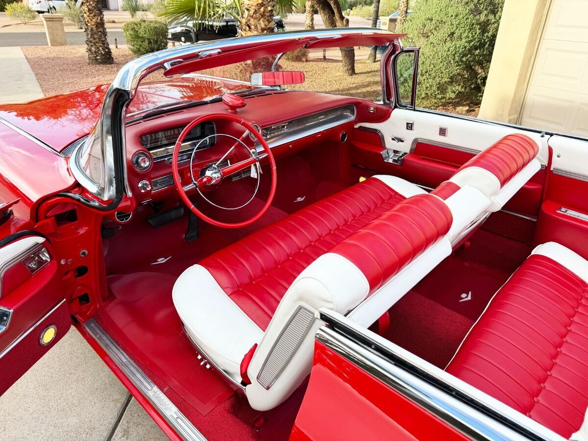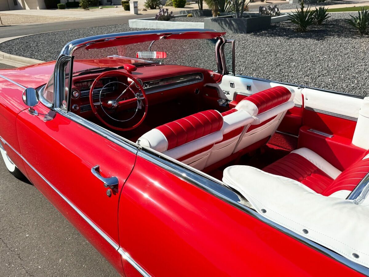 Highlights:1959 Cadillac Series 62 ConvertibleLoaded w/Working Factory Options High-end restoration on a rust-free original carShow-quality chrome, trim, and brightwork throughoutBeautifully detailed engine bay and trunkDrives incredibly smooth and tight-fully sortedStriking color combination: Seminal Red over red and white leatherRestored steering wheel and dashFactory white convertible top with restored frame and new componentsA top-tier example of one of Cadillac's most iconic years