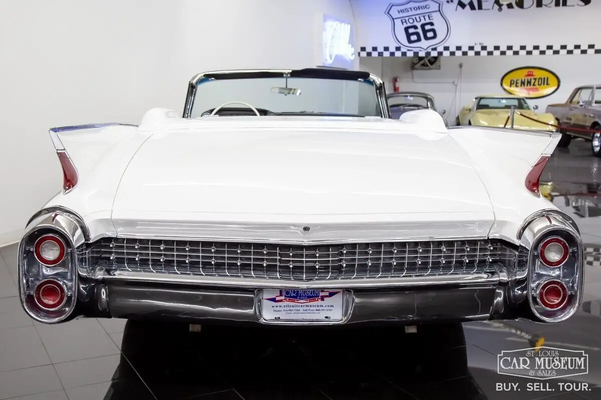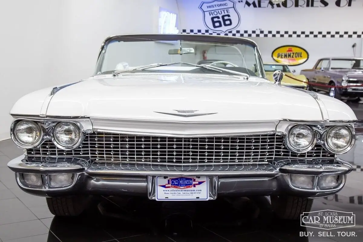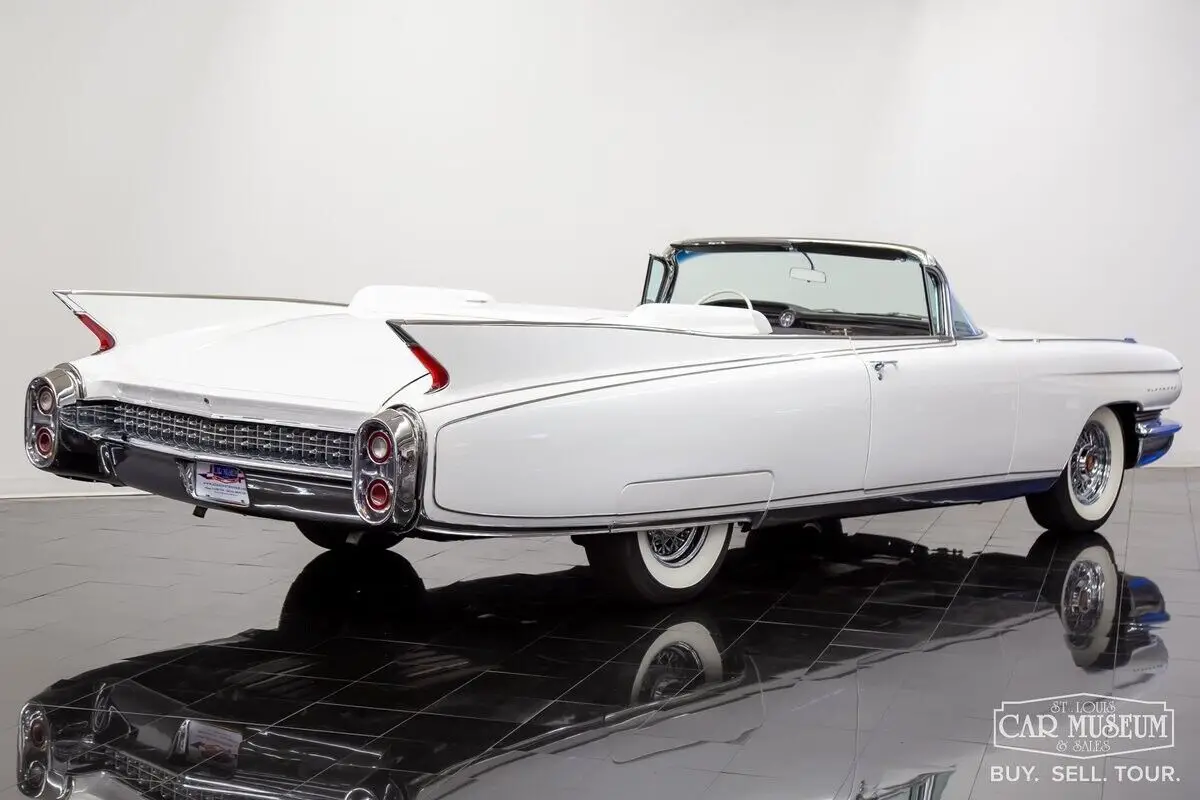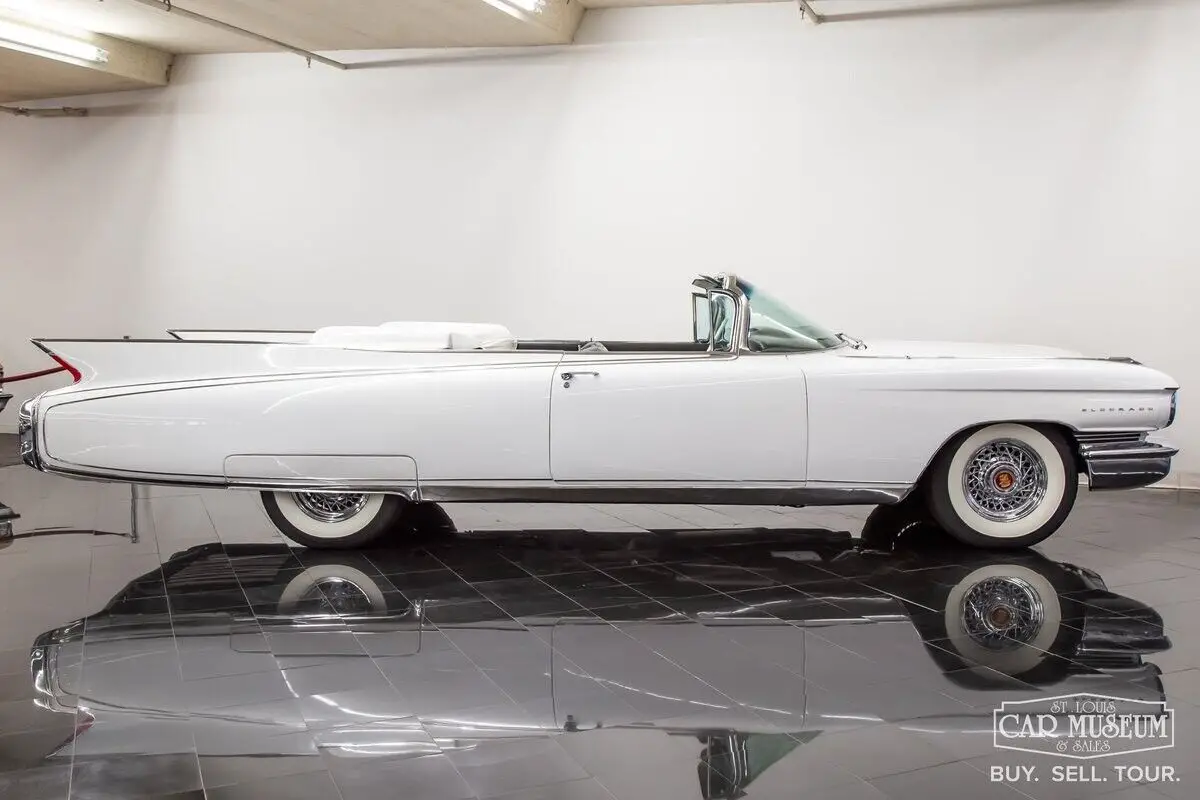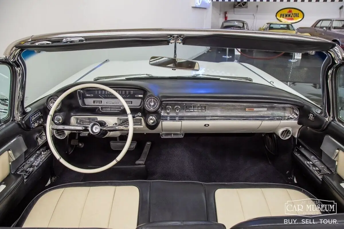 Details About Our Cadillac Eldorado Biarritz for sale: Available now at the St. Louis Car Museum is a 1960 Cadillac Eldorado Biarritz Convertible finished in Olympic White (originally Lucerne Blue) with a Black/White two-tone interior (originally Blue) and white convertible roof. This timeless, classic Cadillac is powered by a date-code correct 390ci-3x2bbl V8 producing a factory rated 345hp mated with a Hydra-Matic 4-speed automatic transmission. Features and optional equipment include factory air conditioning, 8-way power driver seat, Guide-Matic automatic headlight dimmer, power windows, vent glass, & locks; factory standard power steering & brakes, heat/defrost, dual outside rearview mirrors, cruise control, electric trunk release, rear fender skirts, chrome 15" Kelsey-Hayes wire wheels & Coker Classic wide whitewall radial tires, E-Z-Eye tinted glass, AM radio, windshield washer, and parade boot covers! This 50s Cadillac spent much of its life in collections between the Scottsdale, AZ, and Dallas/Houston area and has a well-known history dating back to approximately 1996 when this car had already been cosmetically restored with new interior and exterior color appointments. Most recently, this beauty was parked in the Horton Classic Car Museum Collection based in Nocona, TX from 2013-2023 alongside an amassed collection of wonderful luxury, muscle, and sportscars exceeding over 200 vehicles! This collection would sell in near entirety with this Cadillac Biarritz making its way to the Carolina Classic Cars collection in Zebulon, NC. It would arrive at St. Louis Car Museum & Sales in June 2024. Upon arrival, we elected to replace a few aging components along with a complete tune-up and air conditioning service. This included new engine & transmission mounts, steering coupler and idler arm, rear pinon seal, rear trailing arm bushings, and differential ball joint. The driveshaft u-joints were replaced and new differential gear oil in the axle. The engine received new oil and filter, complete tri-carburetion overhaul, new fuel filter, valve cover gaskets, new air filter, new air conditioning compressor with recharge of modern R134a, and fresh distributor cap/rotor, spark plugs/wire set. The brakes were also completely freshened with 4 new drums, a rebuilt master cylinder, new wheel cylinders, hoses, and rear shoes as well as fresh brake fluid and bleeding of the complete system. It shows only 64,998 miles on the odometer, although we don't have enough documentation to support any true mileage claims. We do know it was driven very sparingly over the last 25 years or so, making our mechanical contributions worthy for the new owner to drive it with added confidence! Contact Jon Faust to learn more about this classic Cadillac or to ask about financing and trading options - 855-586-3413 | 855-586-3413 | email History About Cadillac's 1960 Eldorado Biarritz: One can only imagine the pressure Cadillac's design team felt after the Eldorado debuted to the public in 1959. Although considered one of the most desired cars among Cadillac collectors today, the 1959 model was an extremely extravagant design for car buyers during the day. Its wild charisma and huge rear fins weren't for everyone and may have turned a few longtime Cadillac devotees away from showrooms. The answer in 1960 was a milder, slightly more subdued design to woe traditional buyers back. They could not have been timelier in that decision, and produced another outstanding vehicle with timeless body lines! It would also mark the final year of the Eldorado Seville Hardtop Coupe, tri-carburetion engines, and air ride suspension. The top-of-the-line Eldorado models continue to be one of the most desirable Cadillacs to own today! Only 1,285 Cadillac Eldorado Biarritz Convertibles would find showrooms in 1960, making them solid blue-chip investments still today! Contact Jon Faust at 855-586-3413 to schedule a test drive.