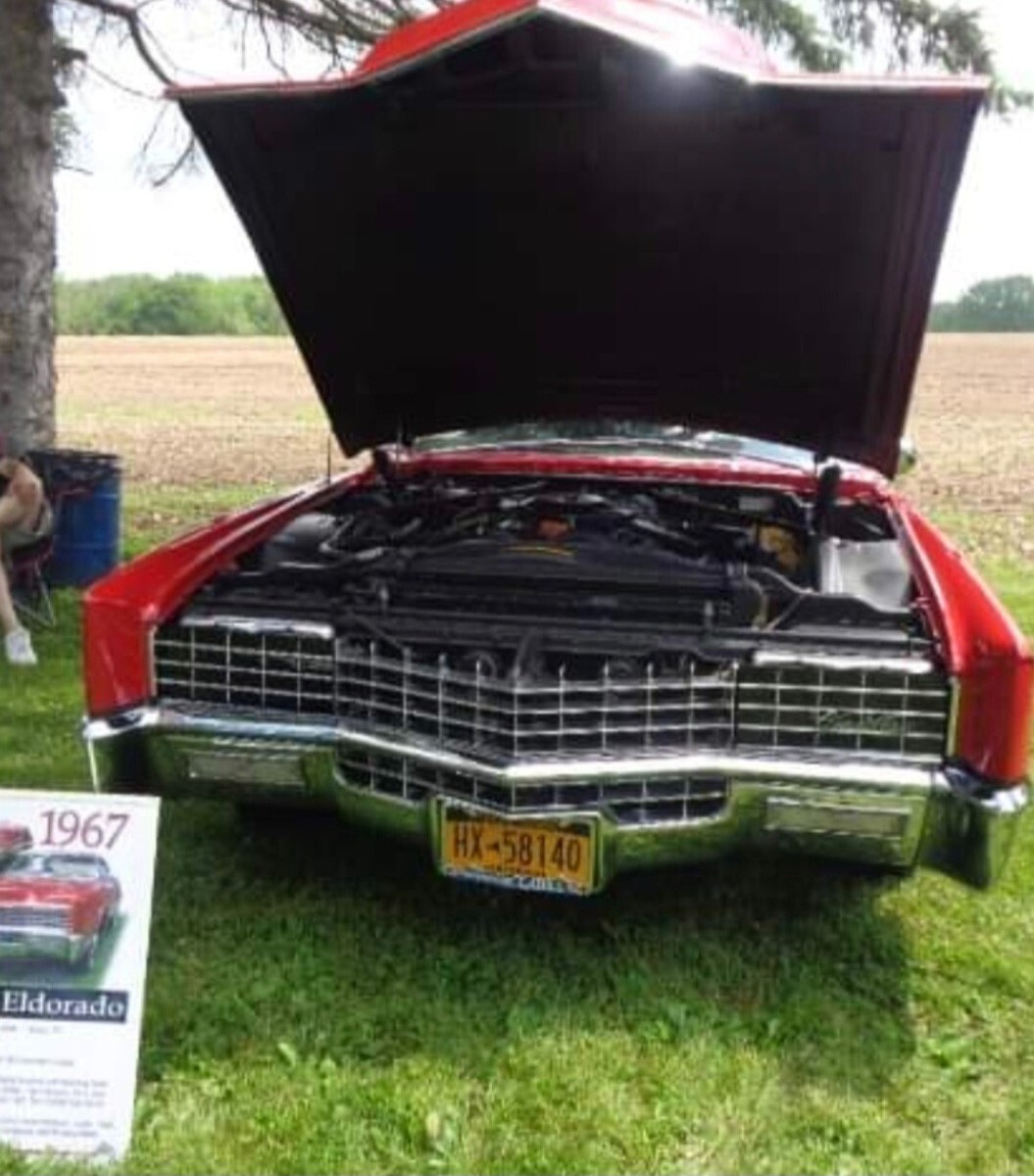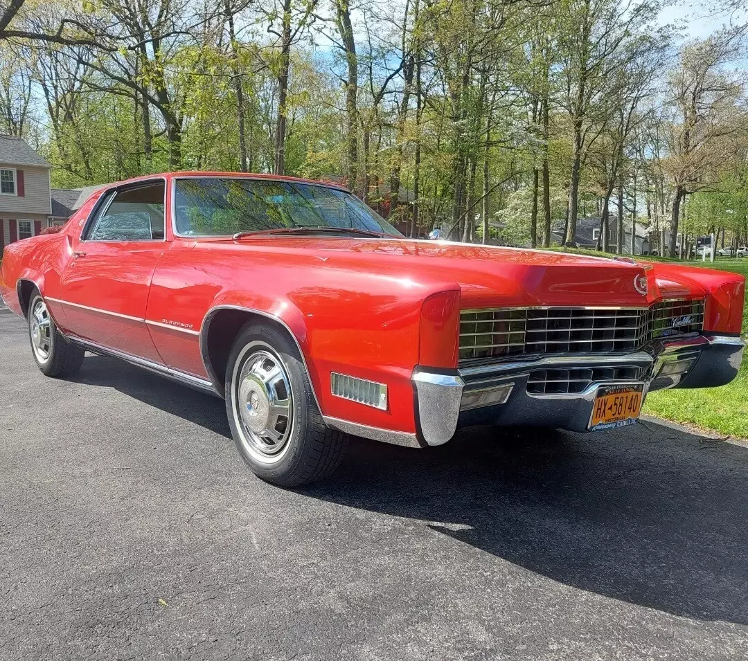 1967 Cadillac Eldorado, the 1st front wheel drive Cadillac, high end example that will be the highlight of any collection! With only 35,797 original miles, #13,000 out of 17,930 made & 1 of 3000 or so slick tops made in 1967. Original California ca, then North Carolina car before I owned it so underbody is gorgeous!-Original 429 engine w/340 hp & transmission, codes also match. AC/heat works, has freon in ac compressor, pw windows, locks, seats, trunk release, antenna, cc, Original stereo radio & rare Original floor mats. Everything works except dash clock. Also has Original license plate frames from dealership of origin in San Francisco.- interior is beautiful, no tears, rips, or cracks, all Original window glass throughout, power rear windows also, all lights/ gauges work as they should.-Paint/body is beautiful, code 48 Flamenco Red paint, deep gloss & excellent reflection, no rust, bubbles, chips, peel, dents, or fish eyes, Original body panels,.- Engine is Original to car, detailed and runs strong, tranny shifts like it should, car has never been driven in snow & only in rain 2x in 15 yrs I've owned it & also stored in heated garage during this time.- All stainless trim & chrome was redone in 2018 in Canada in the original Hexavalent finish and is in showw condition-no pits or scratches with a shine so bright it'll give you a headache!- Car cover, original red promo car trophies and custom car display sign go with sale. Have all receipts & paperwork. No mechanical issues, driven about 500 miles per season.-SERIOUS only please, meaning have funds & wife's permission etc. I can be reached at 585-520-2566, thank you!