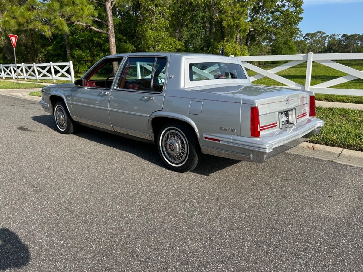 1987 CADILLAC SEDAN DEVILLE ABSOLUTELY GORGEOUS ! THIS CAR IS OUTSTANDING ! EXCELLENT CONDITION INSIDE AND OUT ! BEAUTIFUL COLOR COMBINATION SILVER WITH RED LEATHER THIS IS ONE PRETTY CAR ! YOU WILL NOT FIND ONE AS NICE AS THIS ONE. FULL DOCUMENTATION ORIGINAL WONDOW STICKER ALONG WITH ALL THE RECIEPTS IN A BINDER AND ALL ORIGINAL OWNERS MANUALS AND BOOKS . Always garaged and Has Had the very best of care. And it shows. I have all owners manuals all the books, and even the original window sticker, and the original factory radi, and a brochure of all receipts on the maintenanc, This Cadillac still looks like it did when it was new. I took pics of all angles to show you how nice this car really is please view all pics. The body is outstanding paint has a great glossy shine and looks fantastic. The interior looks like new clean as can be even the carpets are in outstanding condition, it also has the factory floor mats from the factory inside the car plus an extra set of aftermarket floor mats in the trunk. The engine compartment is very nice and clean the trunk Looks like it has never even been used over all this car is just outstanding. This car has 91,111 miles but looks like it’s only got 30,000 miles. This Cadillac is loaded with all power options, including power seats complete all power ice cold air. This Cadillac drives and performs like a dream a pure pleasure to drive I would not hesitate to drive this car anywhere, overall it will be impossible to find another 1987 Cadillac in this condition, This car is immaculate this car is available to view and inspect anytime before purchase, if you come and look at this car and you are not pleased i will pay for your expenses getting here, Like all classic cars this car is sold as is no warranty. I have a great buy it now price on this ca, THIS CAR IS PRICED TO SELL ! and best of all it will be delivered free of charge. YES ! FREE DELIVERY! It will be brought right to your driveway. I will keep you informed throughout the whole transaction from start to finish until the car is delivered in your driveway. There is a $185. dealer fee added to the price and There is a $500 nonrefundable deposit at time of purchase. You will love this car.
