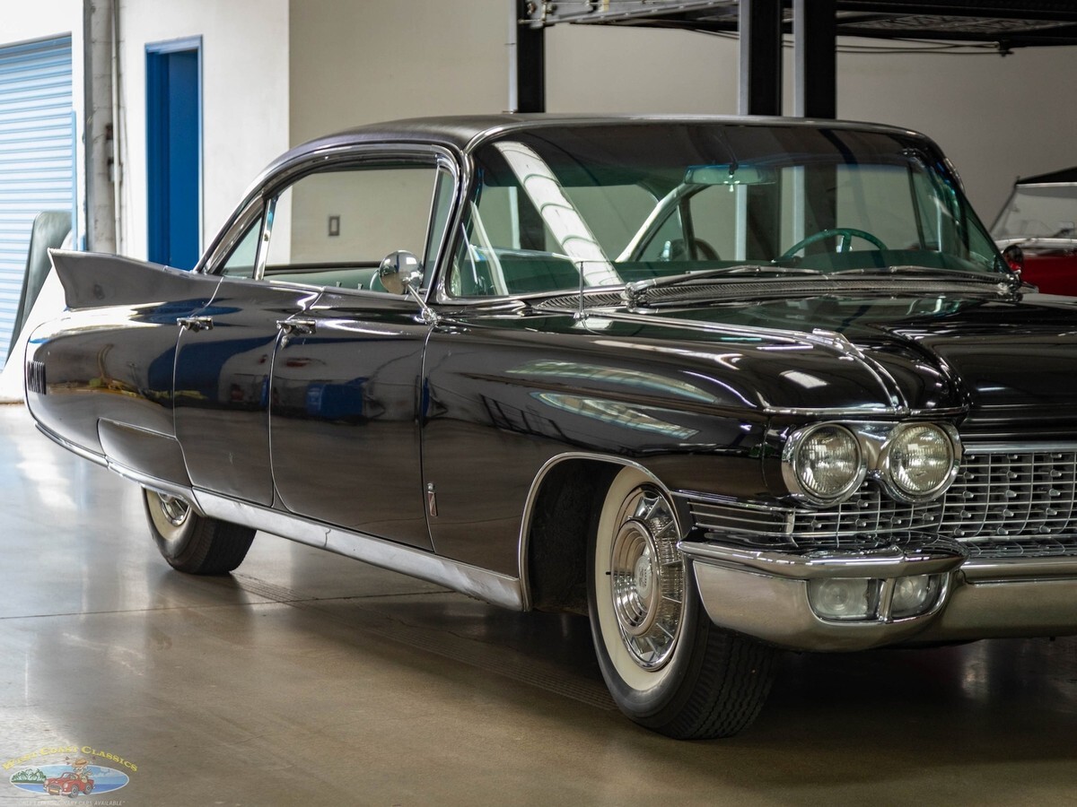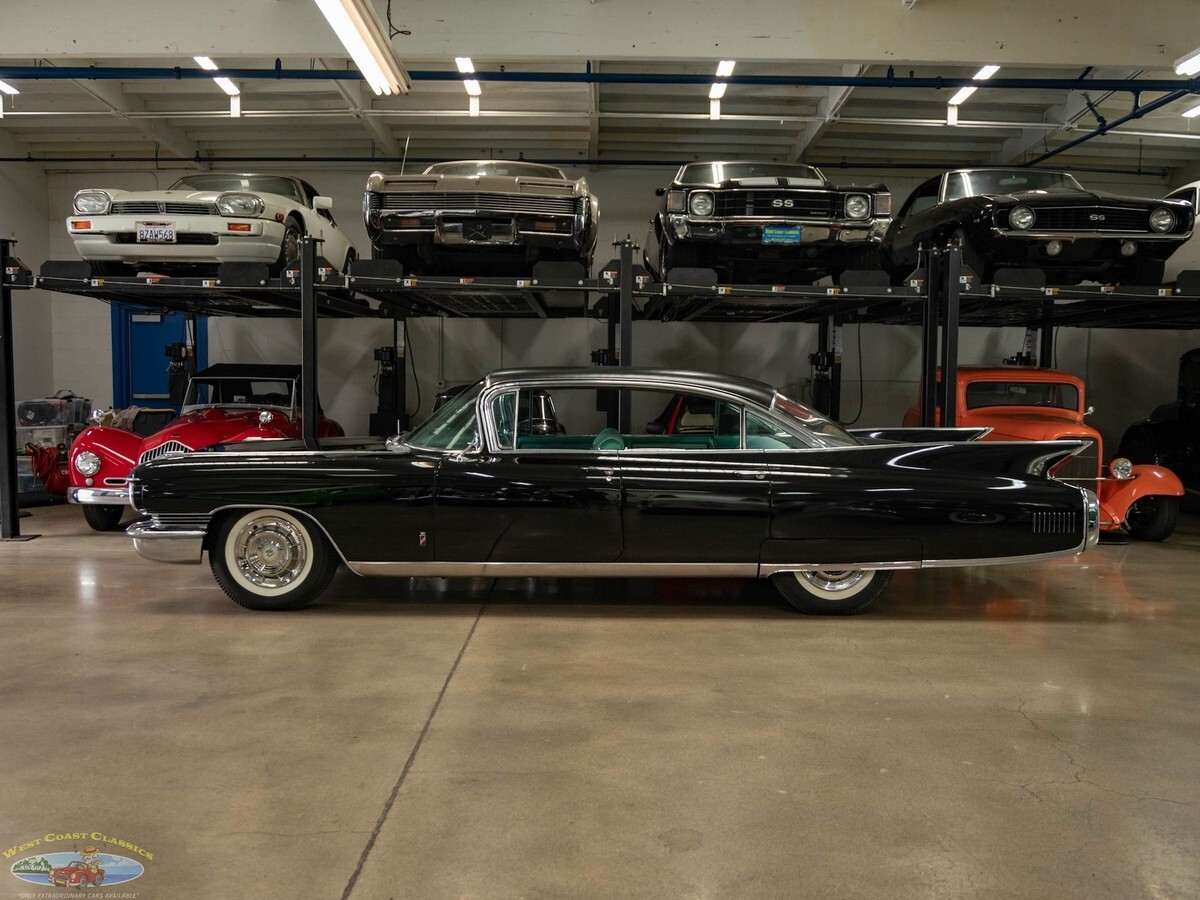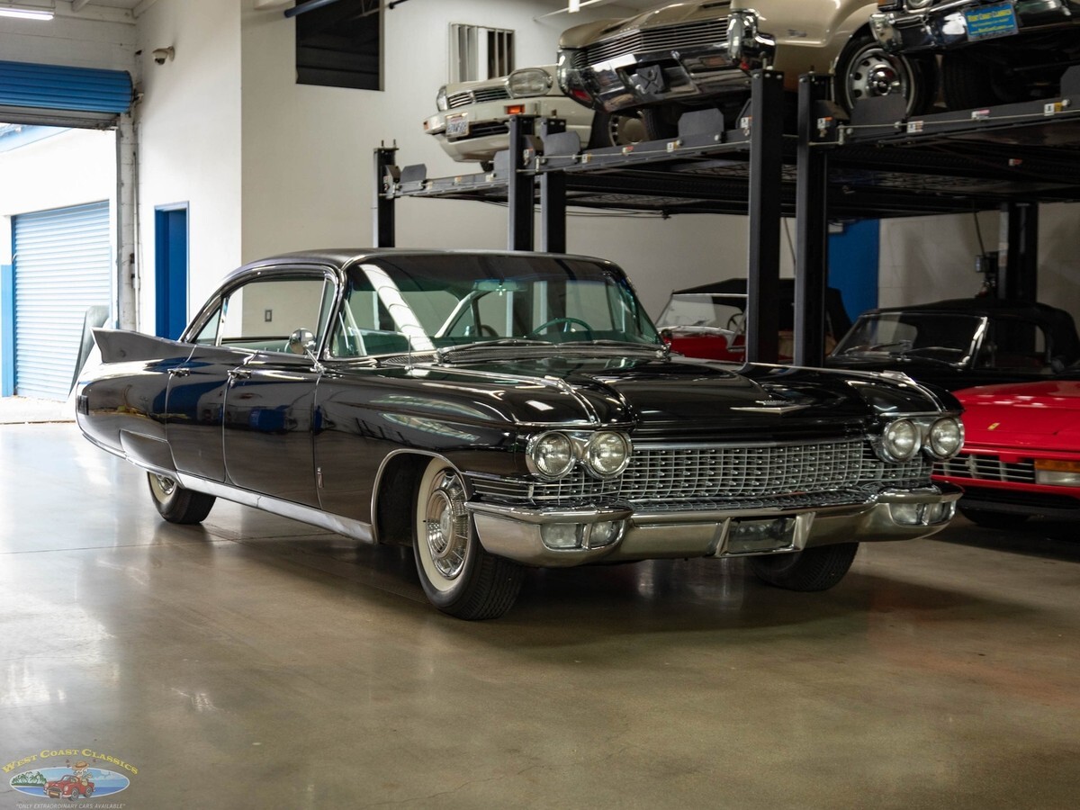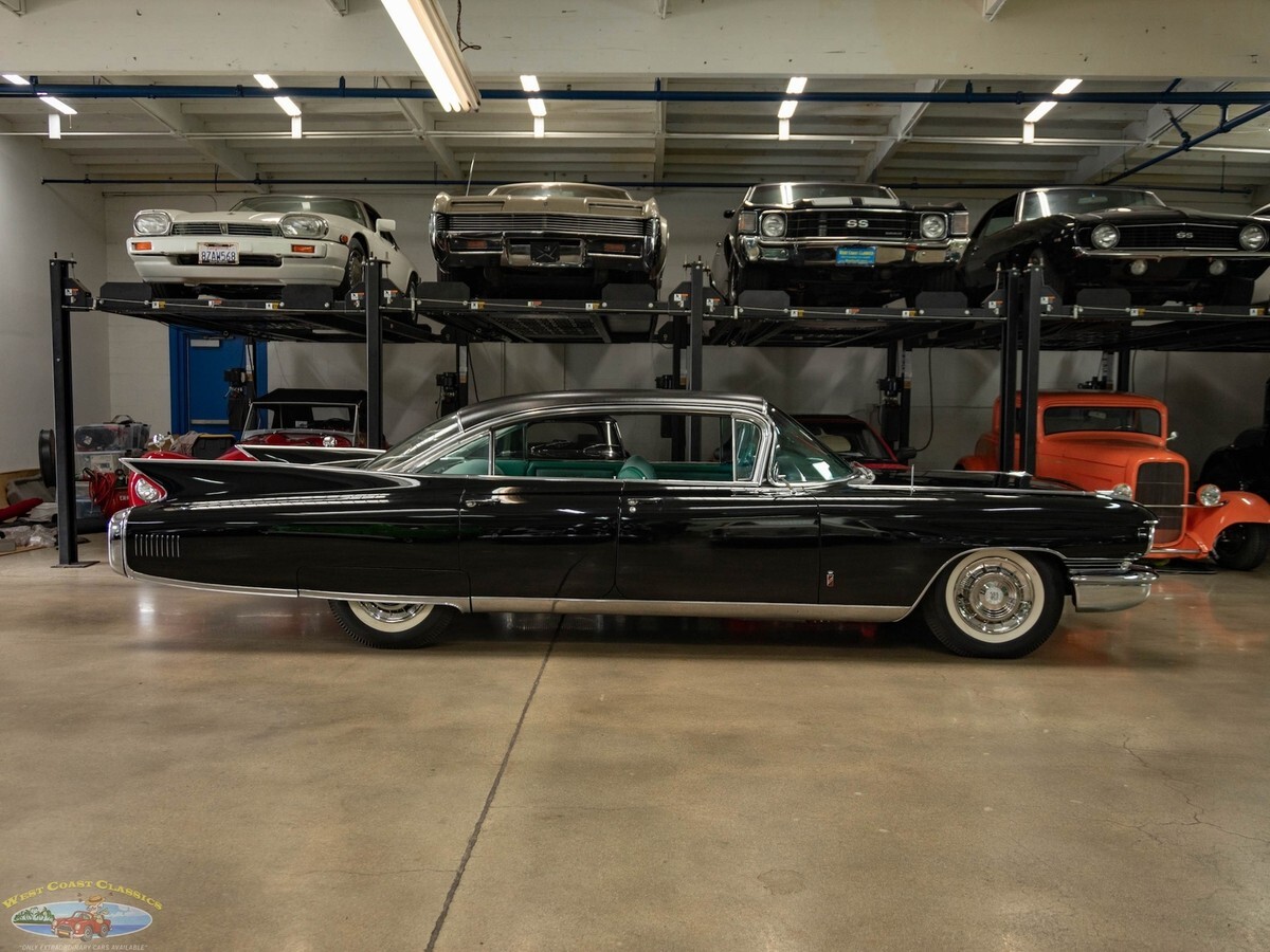West Coast Classics are proud to present an exceptional and great daily driving and rust free example of this mostly all original 1960 Cadillac Fleetwood Sixty Special 6 Window 4 Door Hardtop in Black color paint and with its seemingly all original 'Green' fabric & leather (trim code 67) interior with its original 390/325HP 4 bbl V8 engine matched to a 'Jetaway' Hydra-matic transmission and factory options including;Air conditioning ($474)Power windowsPower vent windowsPower brakesSix-Way power seat adjustment ($85)AM radio with rear speakers ($165)Guidematic headlamp dimmers ($45)Front & rear center armrestsInterior courtesy & map lightsLeft Side Remote Outside MirrorElectric ClockRear Fender SkirtsFront Cornering LampsThere's no better example of GM's styling and engineering prowess in a four door luxury sedan model than the 1960 Cadillac Fleetwood Sixty Special - drive one like this particular example and you will see why - its hard to believe that this car was built over 60 years ago! These cars bristled with the latest in modern appointments and had few rivals in the luxury market and were purchased only by the very privileged elite.The car is mostly all original apart from one repaint and the original 390/325HP 4 barrel V8 engine is extremely strong and powerful and and this particular car drives absolutely magnificently - does not miss a beat and purrs like a kitten - drives straight as an arrow with no strange road wobbles, shakes or rattles - a truly remarkable daily driver that will give any modern day car a run for it's money! The transmission shifts smoothly through the gears and the car is an absolute pleasure to drive! The floor boards, trunk and all the typical rust-prone areas are completely original, solid and rust-free and the car has no signs of any accidents.The car has been repainted once from its original 'Olympic White' color and boasts its seemingly all original specs 'Green' leather& fabric interior and Green carpeting, headliner and trim, all of which are still in quite exceptional condition throughout for their age (over 65 years old!) The car boasts its original trunk lining, spare wheel and jack in the truck!This is a rare opportunity to own a great daily driving example of a very beautiful 1960 Cadillac Fleetwood Sixty Special showing pride of ownership and fully loaded with factory options including air conditioning and in great driving and looking condition!